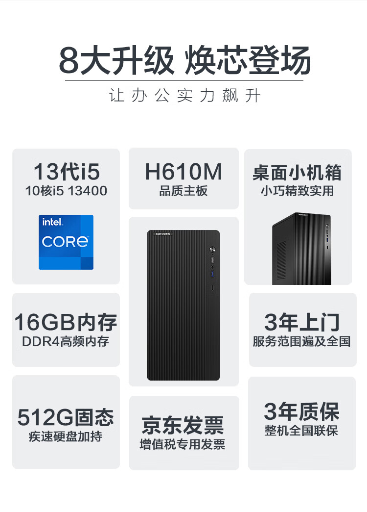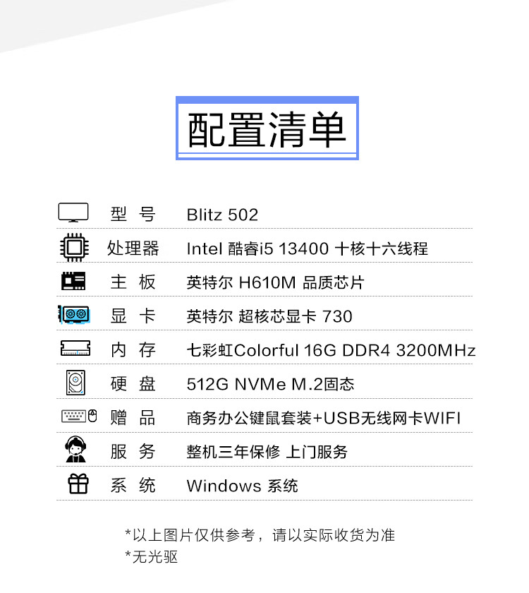 Jingtian Blitz 502 office business computer desktop computer complete set (i5-13400/16G/512G business keyboard and mouse WiFi) single host DIY assembly machine