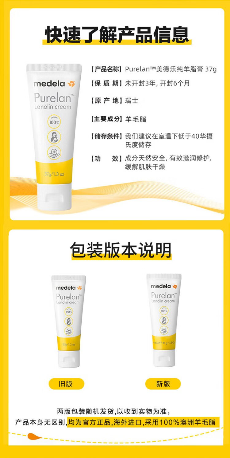 Medela mutton fat nipple cream new version upgraded natural and safe nipple moisturizing cream 37g