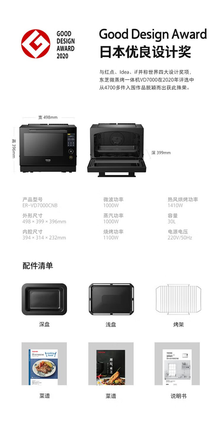 Toshiba Toshiba Toshiba water oven xd7001 Black Warrior Micro steamer and oven all-in-one household desktop microwave oven air frying oven steamer water oven 30L ER-VD7000CNB