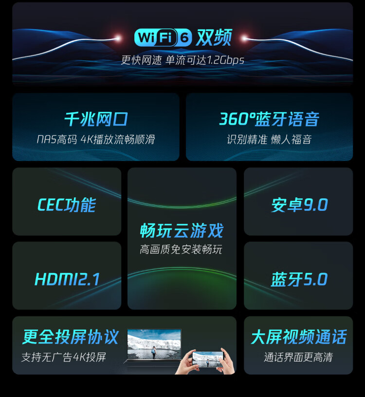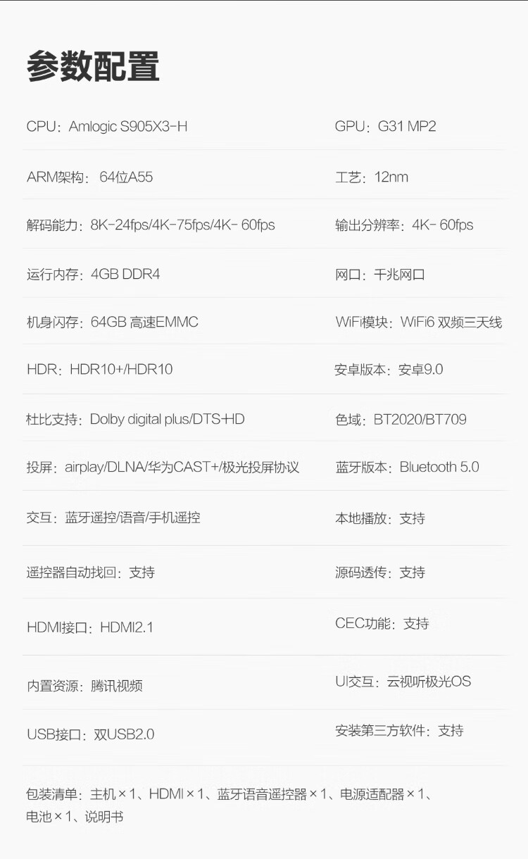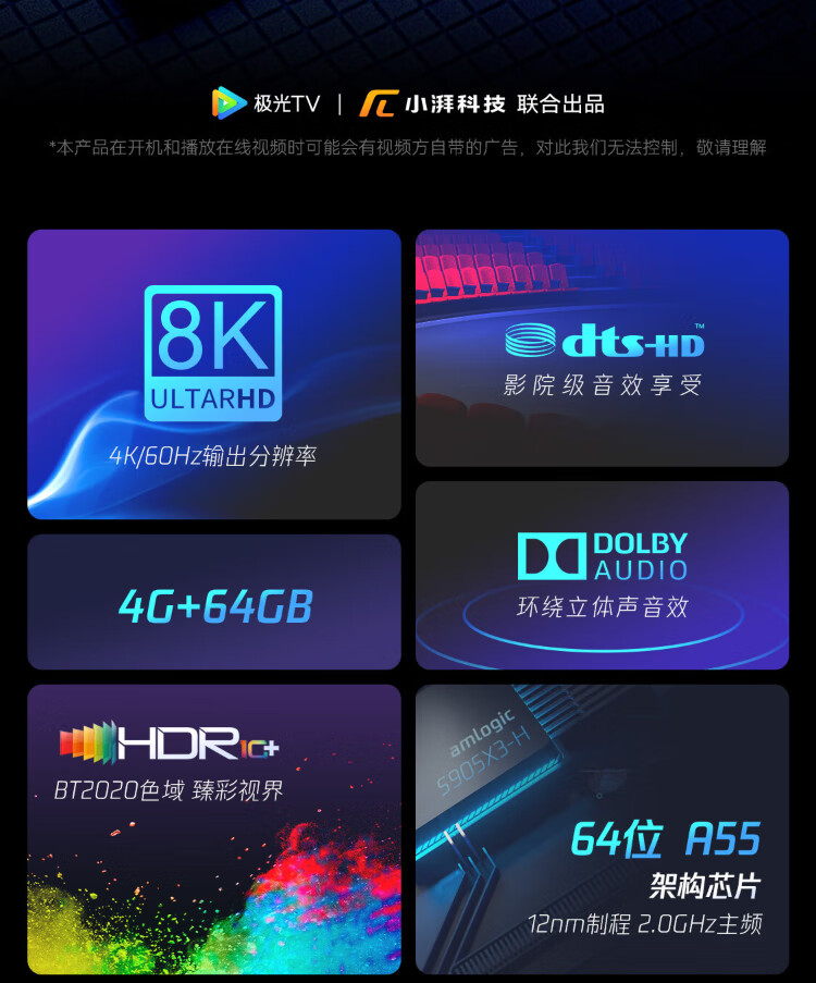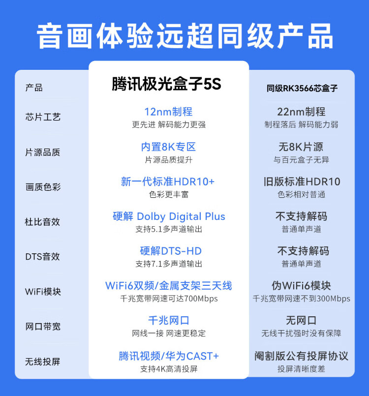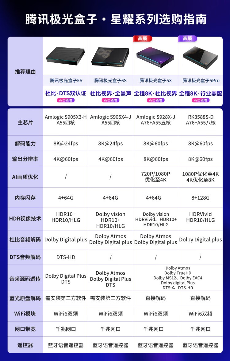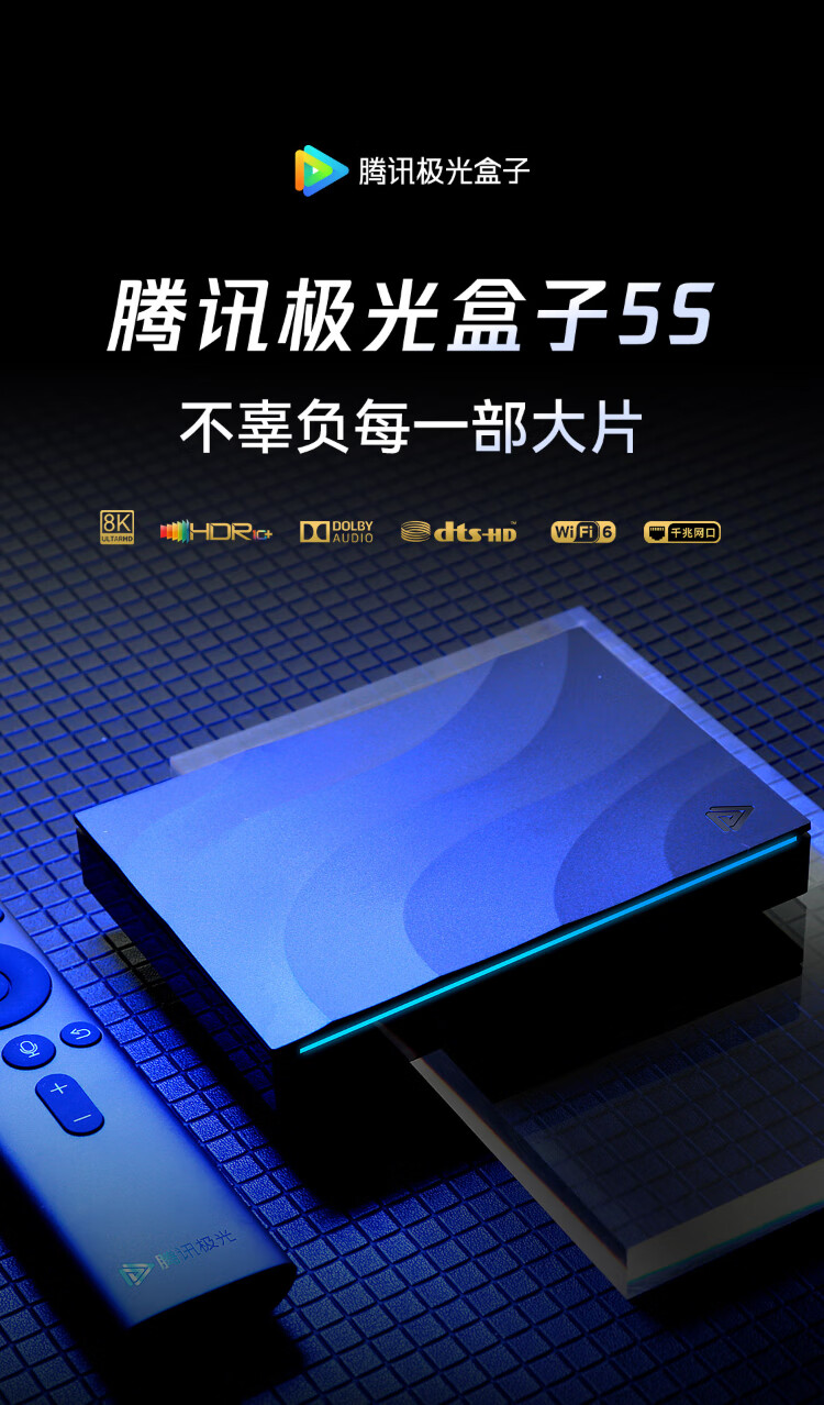 Tencent Aurora Box 5S smart network TV set-top box 8K decoding WiFi6 dual-band DTS Dolby sound 4+64G HDR10+ Gigabit network port cloud gaming