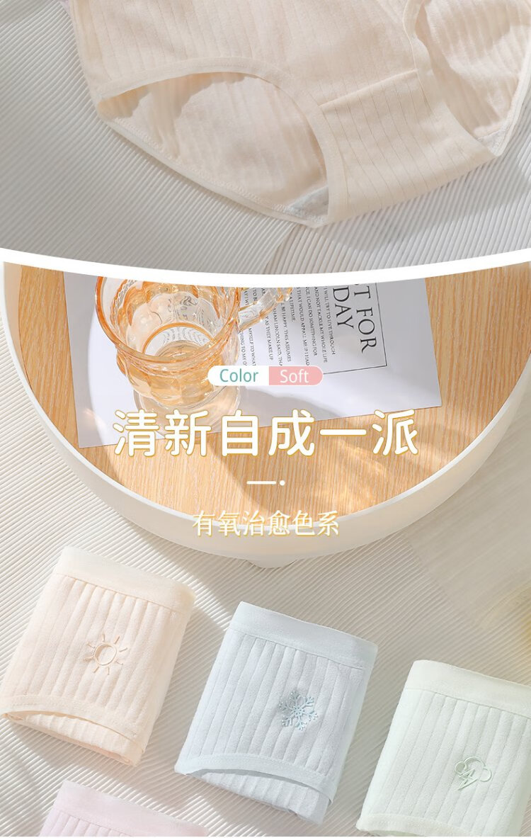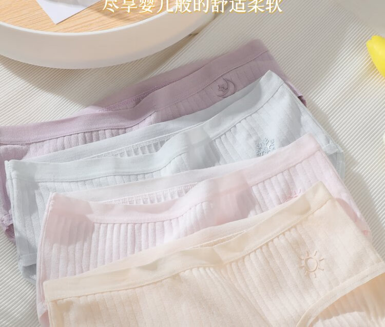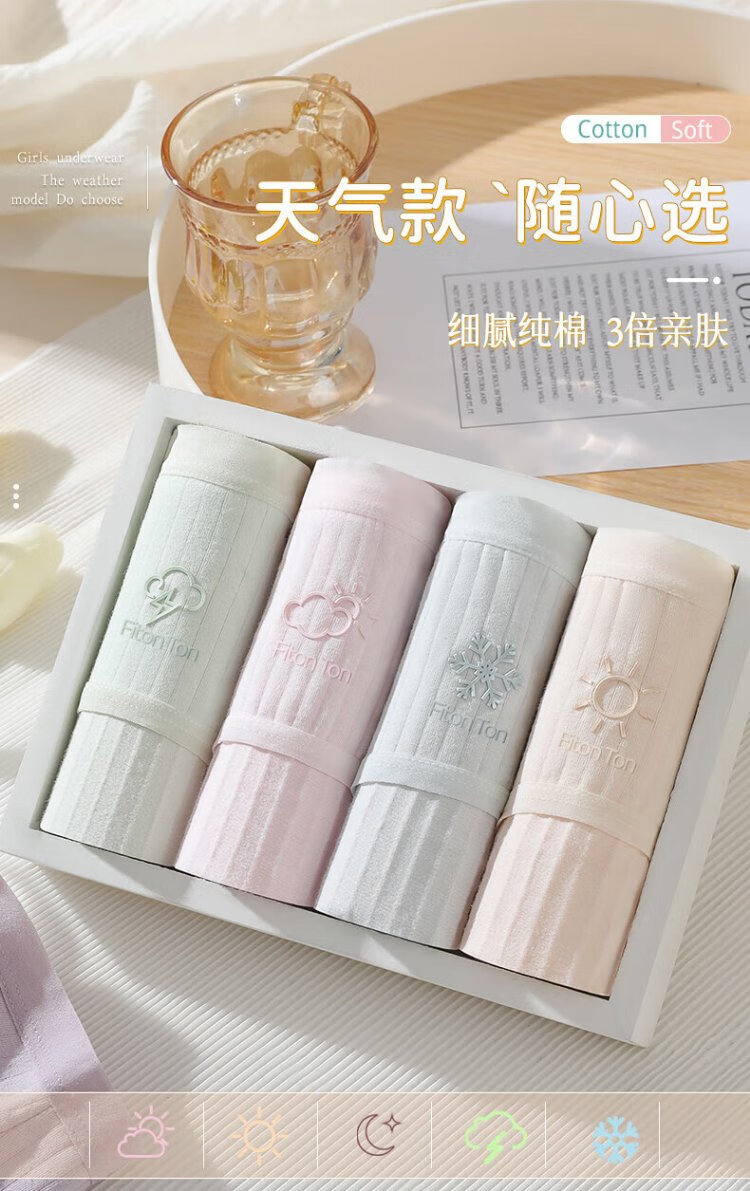 FitonTon 5-piece underwear women's pure cotton crotch women's underwear antibacterial mid-waist girl weather cloud series L