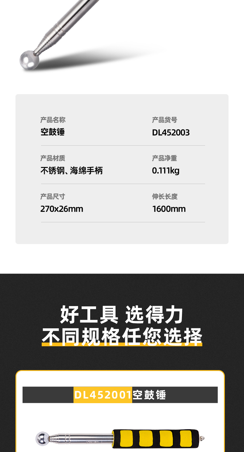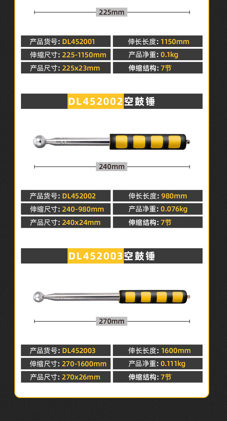 Deli home inspection empty drum hammer wall tile floor tile retractable home inspection set tool 160cm DL452003
