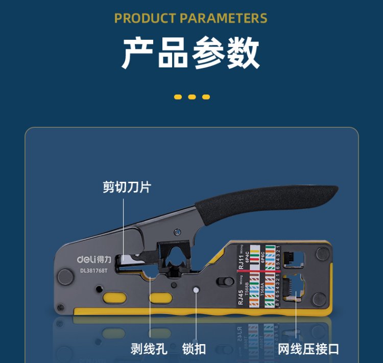 Deli Desktop Network Clamp Category 7 Multifunctional Network Cable Clamp CAT7 Crystal Head Network Cable Crimping Plier
