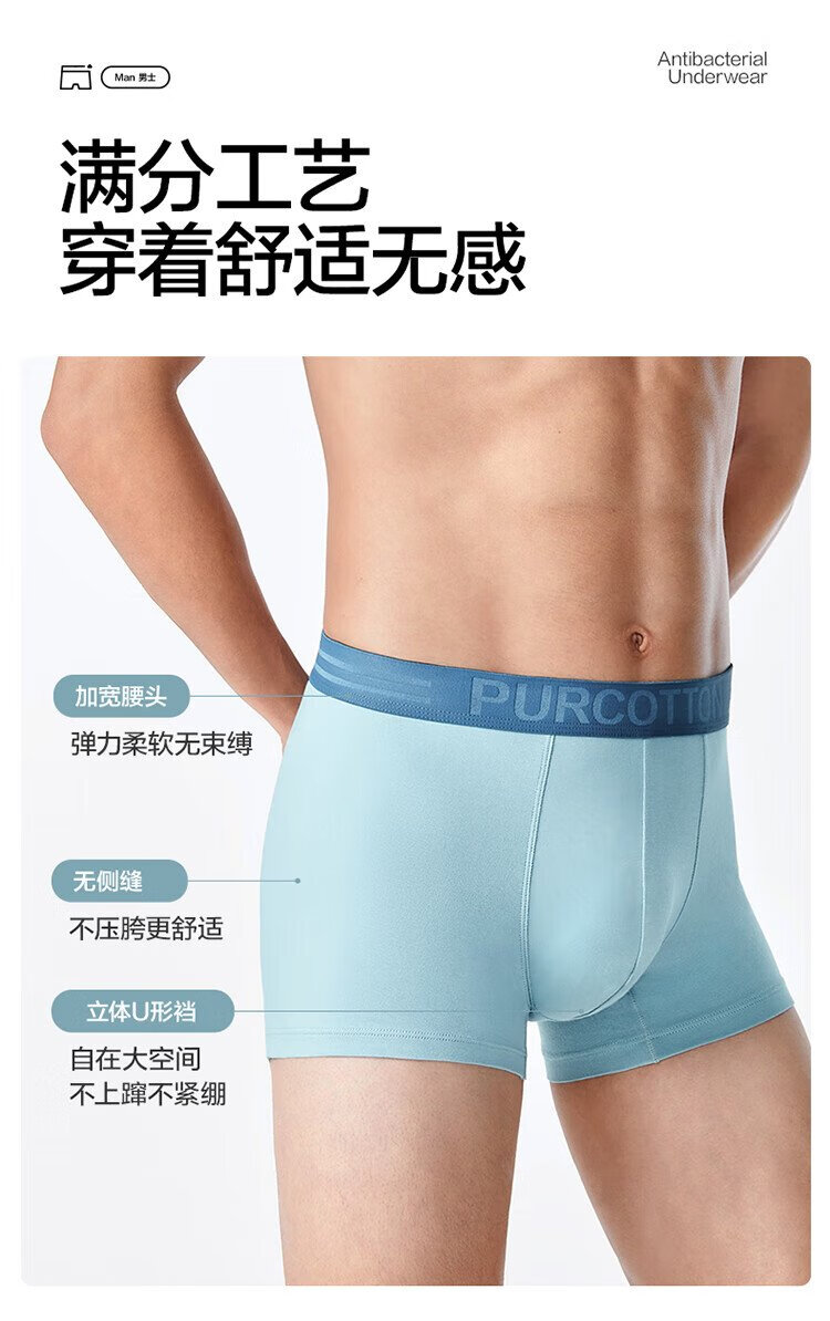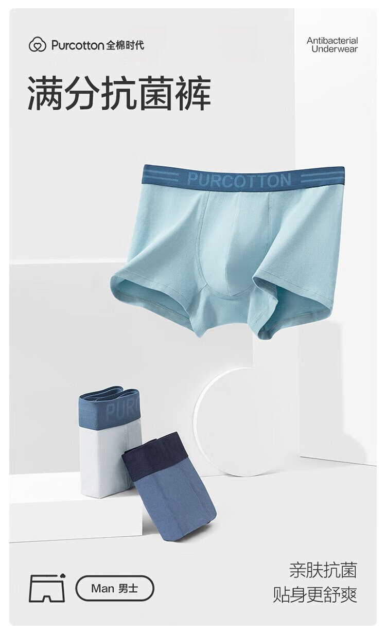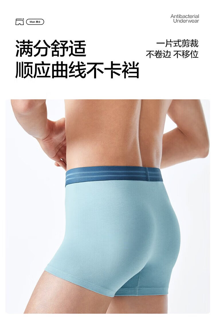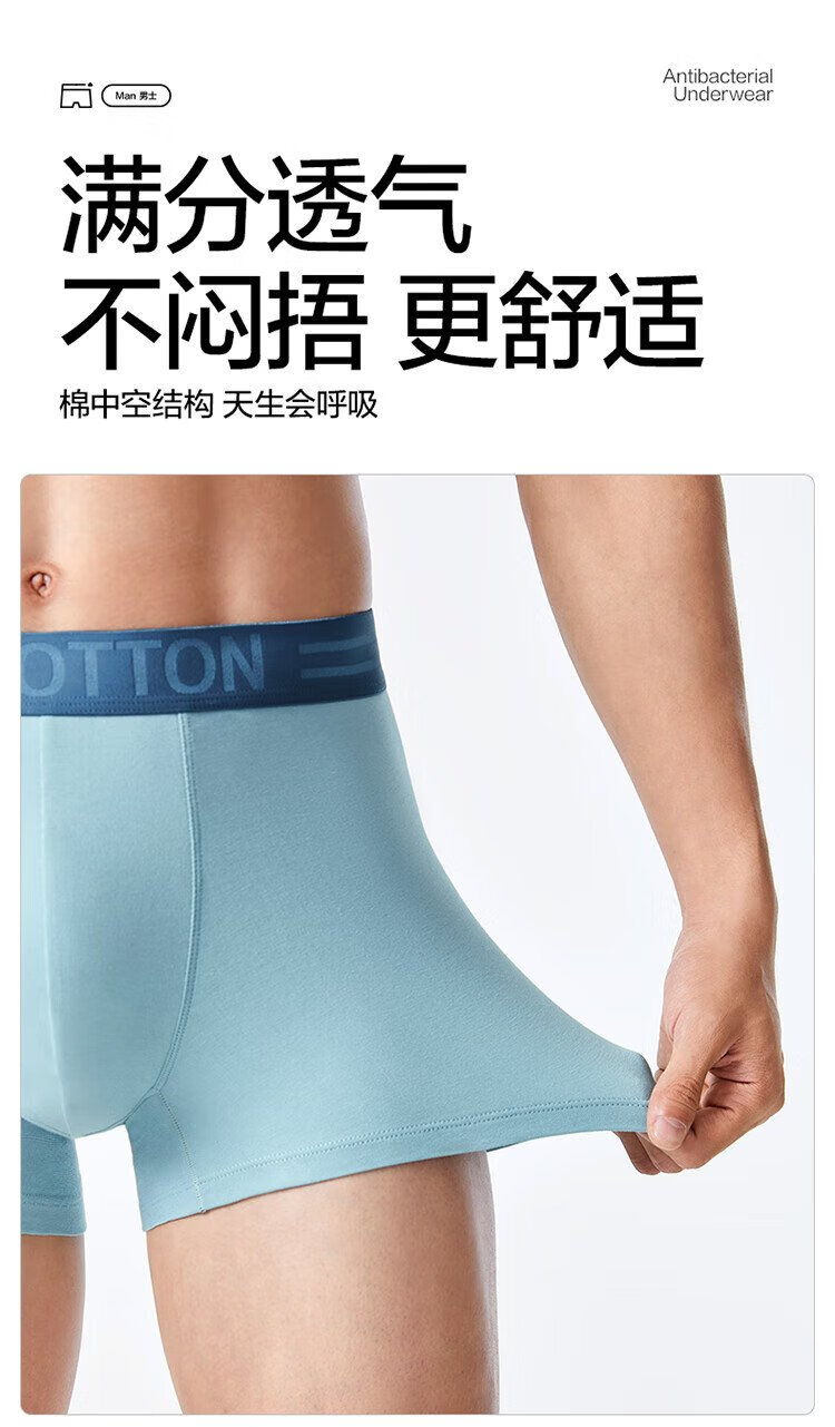 All-cotton era underwear boxer briefs for men, basic 5A antibacterial, all-cotton high elasticity, no deformation, no sweating, self-operated 3-pack