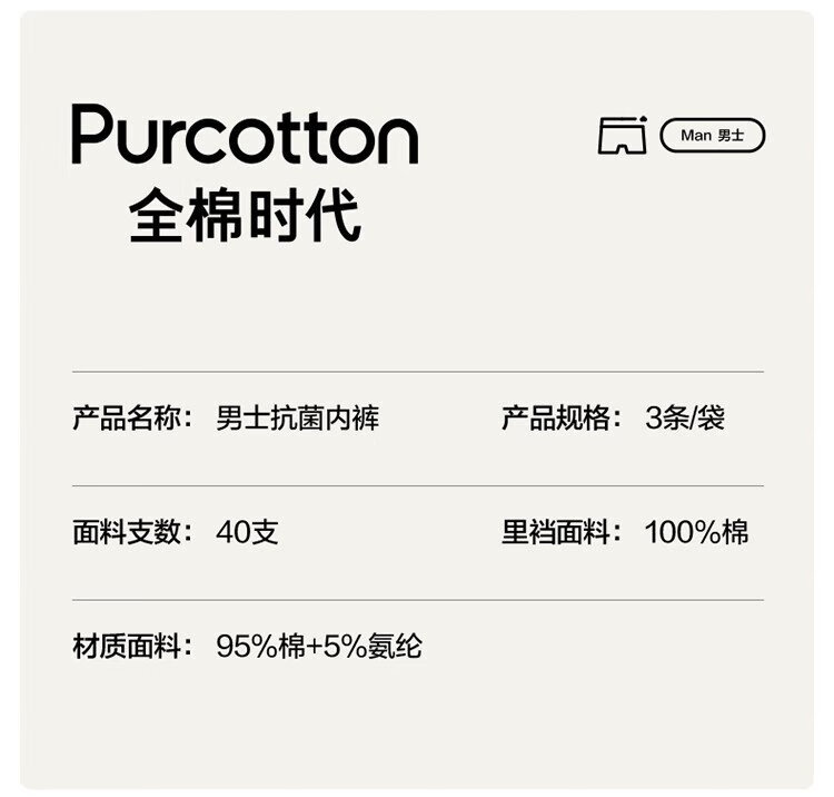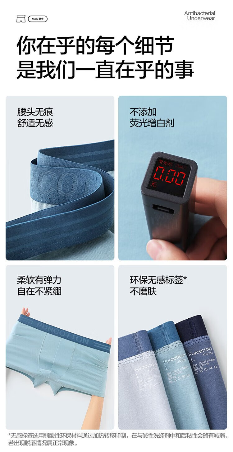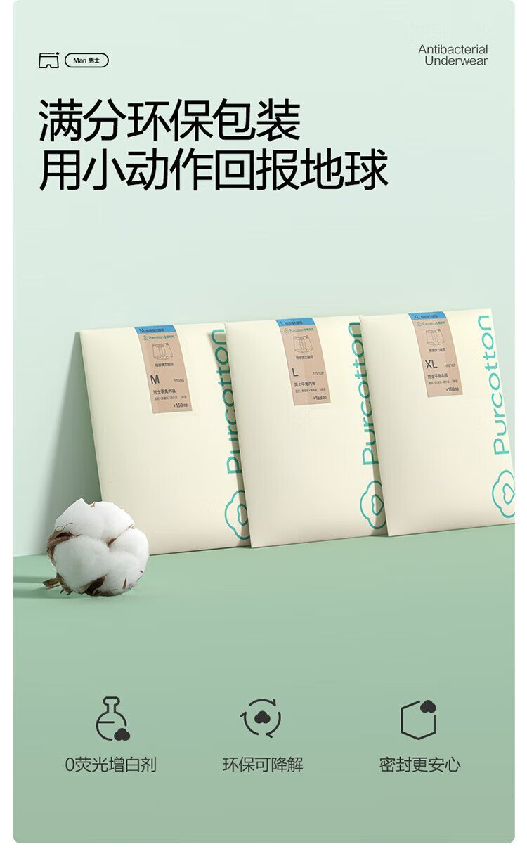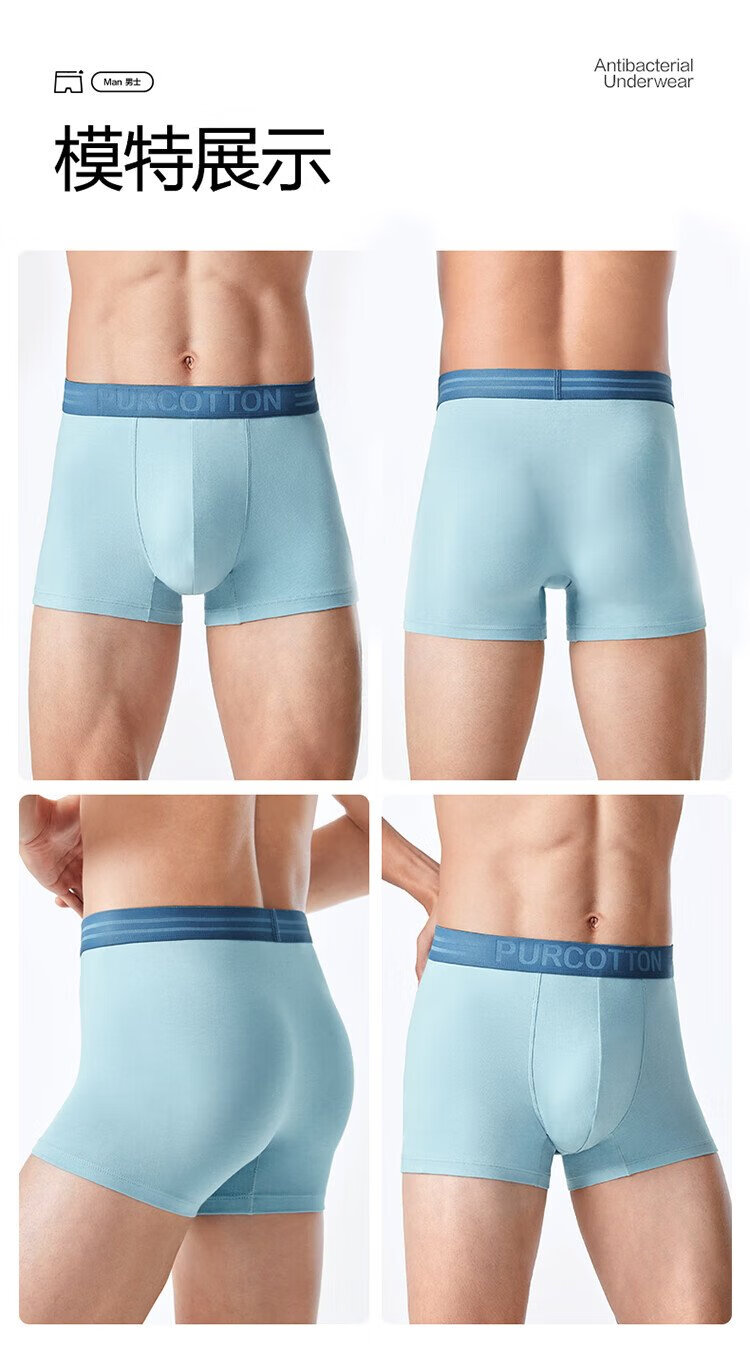 All-cotton era underwear boxer briefs for men, basic 5A antibacterial, all-cotton high elasticity, no deformation, no sweating, self-operated 3-pack