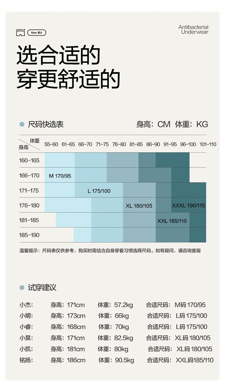 China (cm) 160-165/84-86 165-170 / 88-90 167-172 / 92-96 168-173 / 98-102 170-176 / 106-110
