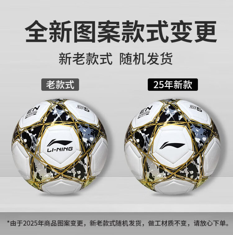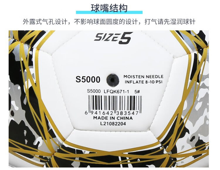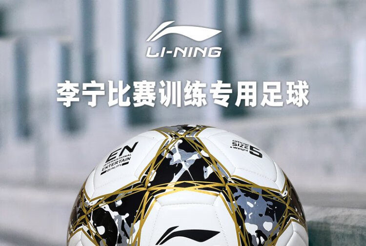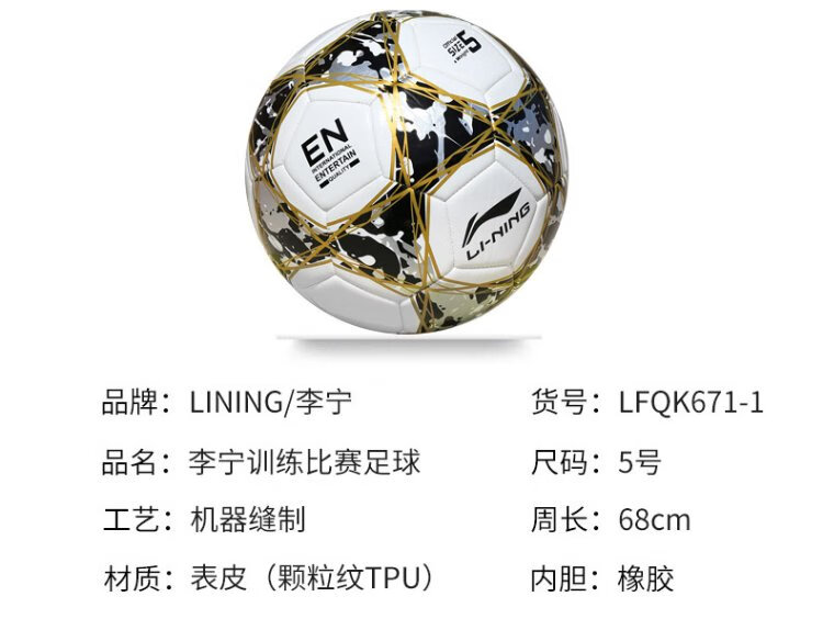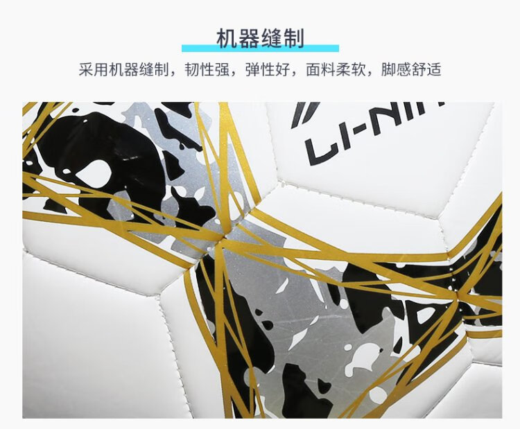 Li-ning (LI-NING) football No. 5 ball test training wear-resistant anti-slip machine-sewn yarn-wrapped rubber liner white black gold LFQK671-1