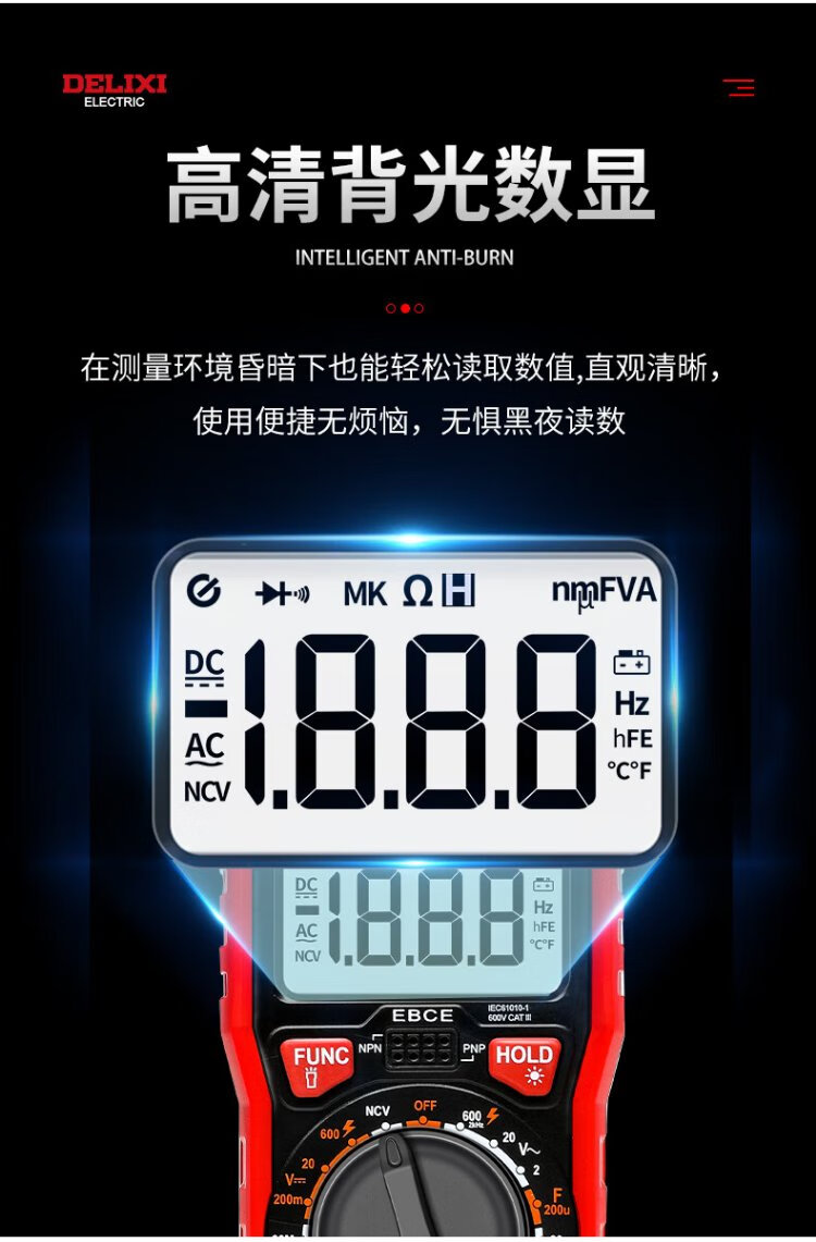 DELIXI ELECTRIC smart anti-burn multimeter digital backlight digital display household high-precision voltage/current/resistance/capacitance/frequency