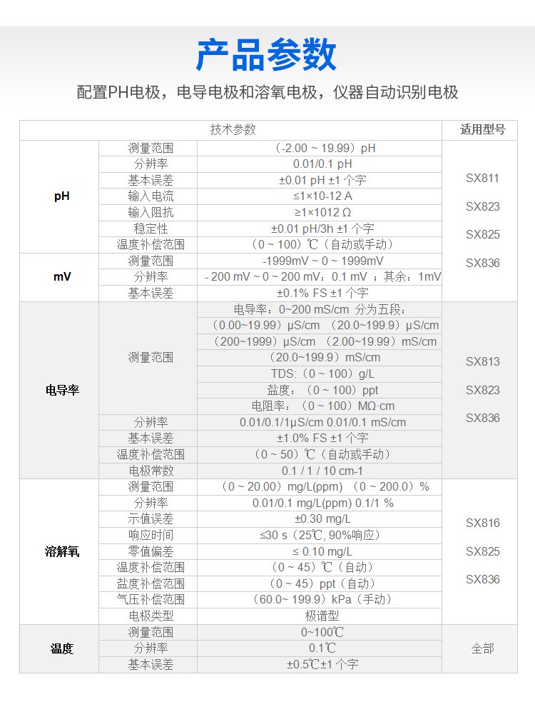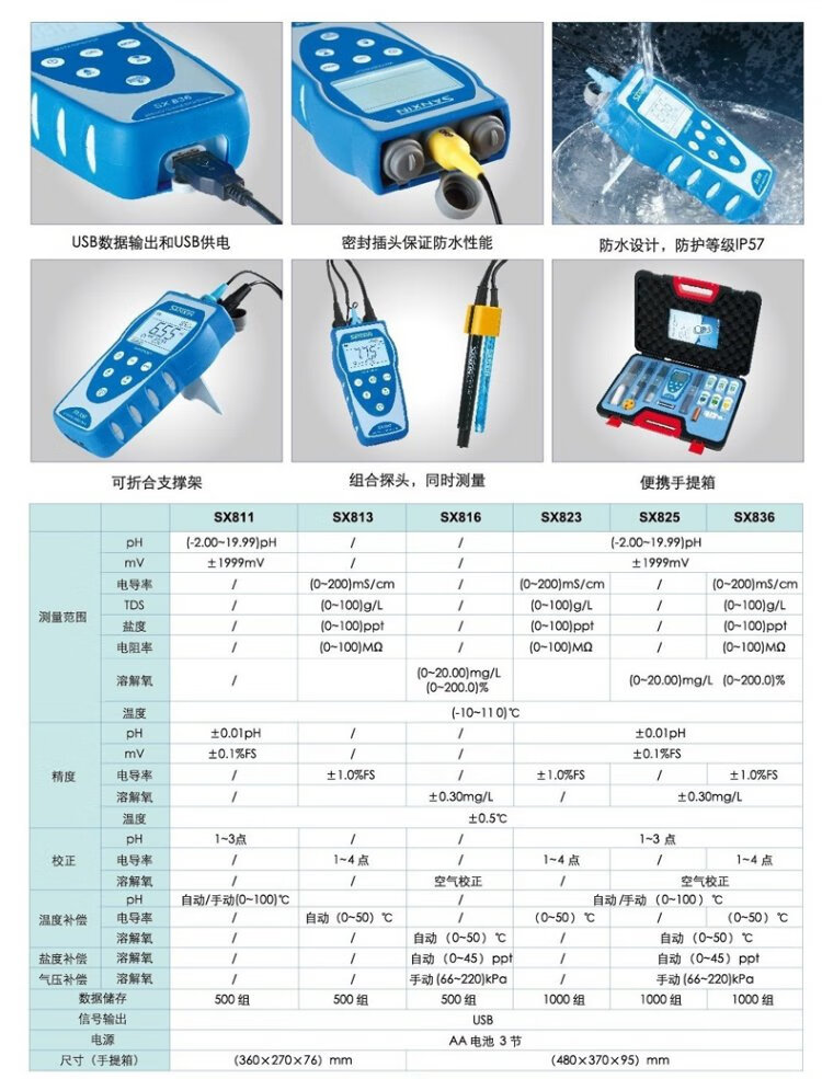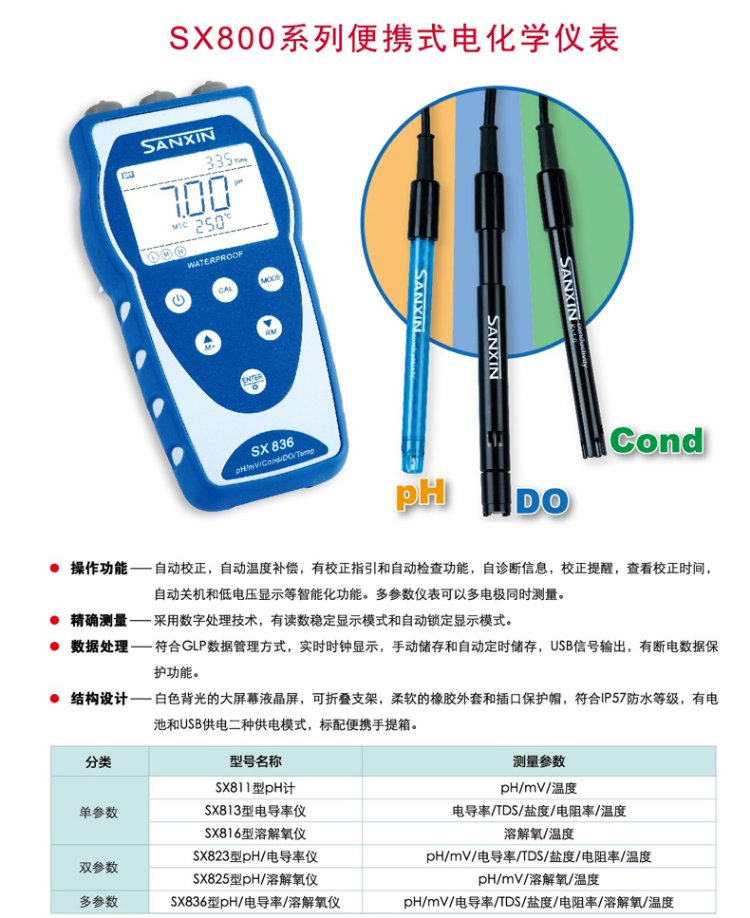 Sanxin SX800 series portable pH meter multi-single parameter tester dissolved oxygen ORP conductivity acidity meter SX816