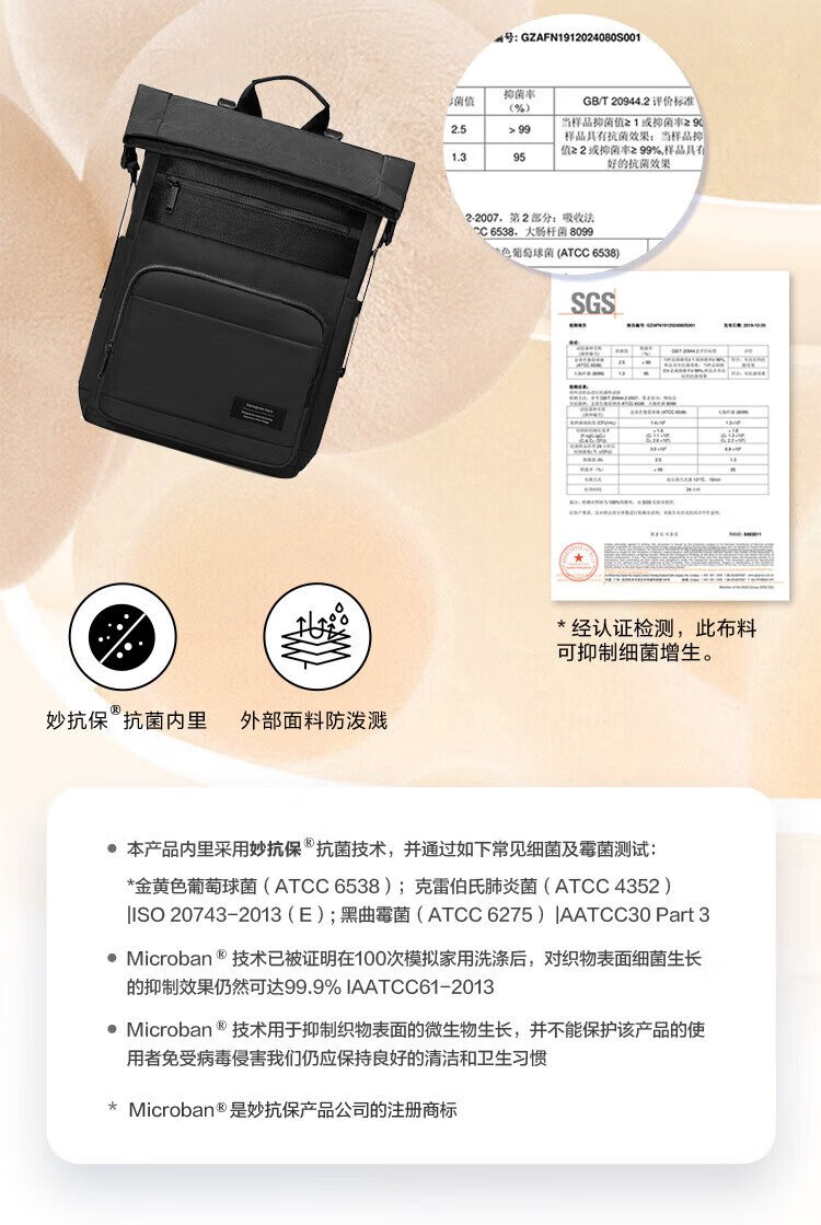 Samsonite Casual Fashion Backpack Computer Bag 15.6-inch Men's and Women's Backpack Large Capacity Environmentally Friendly Antibacterial Fabric QE7