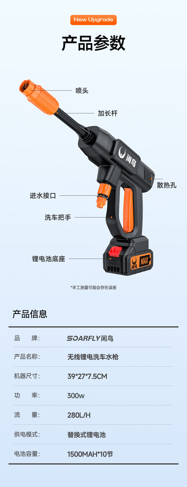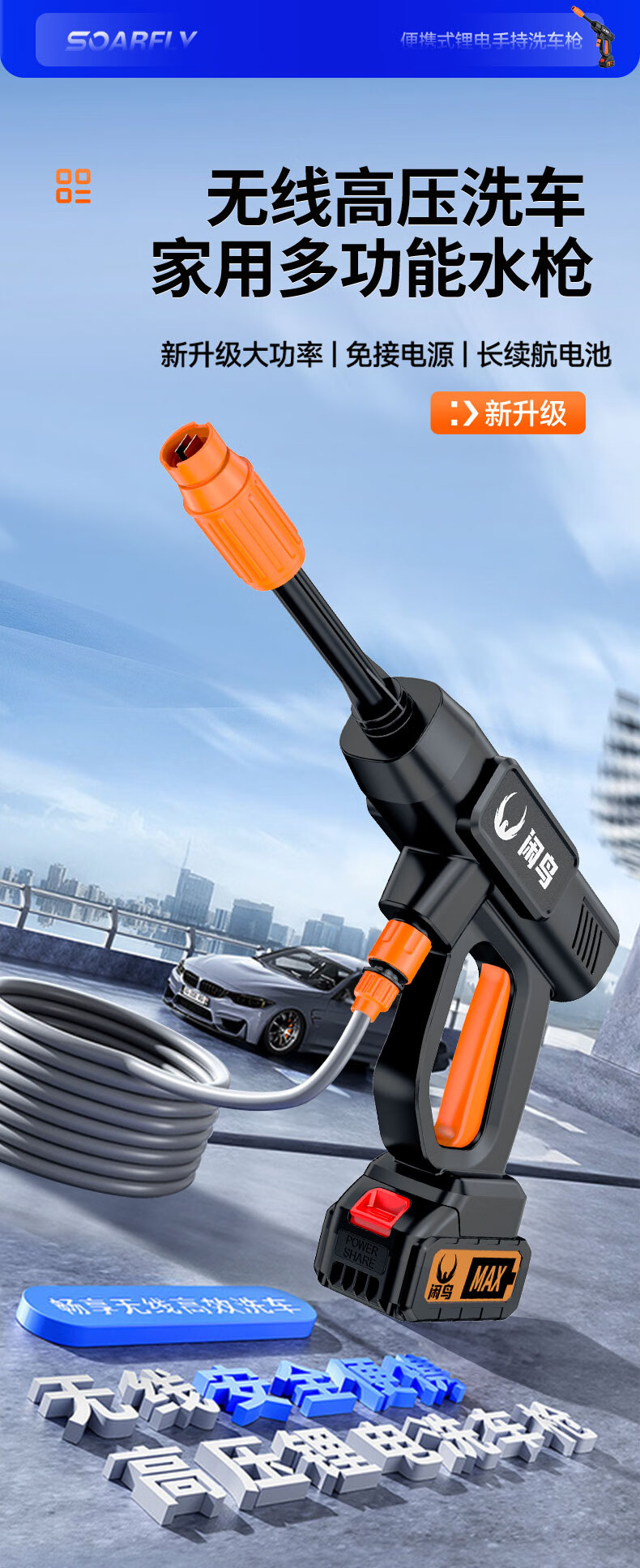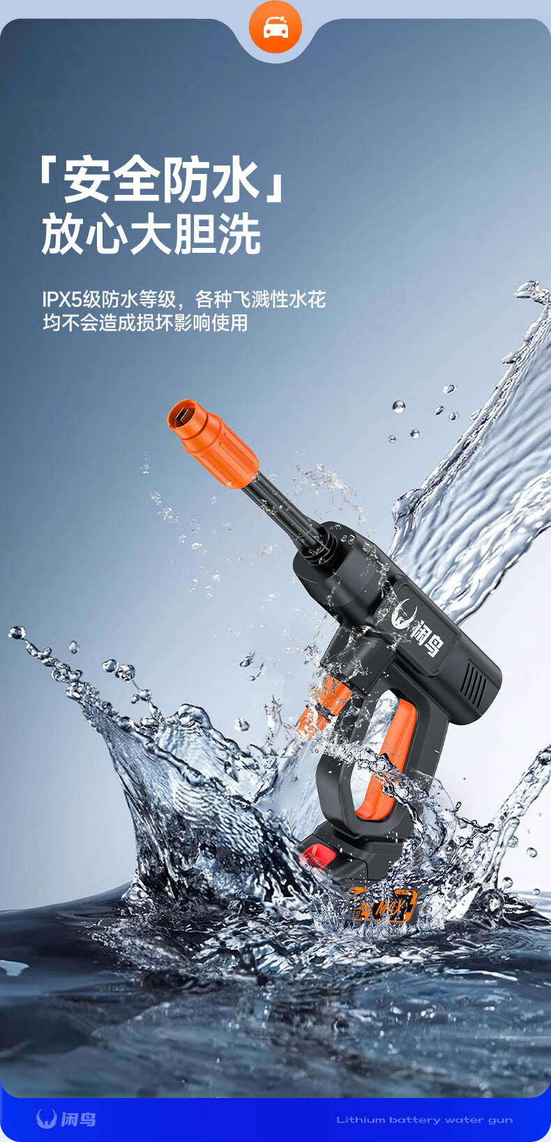 Xianniao high pressure car wash water gun household lithium battery wireless car wash machine portable car wash artifact high power electric car brush pump
