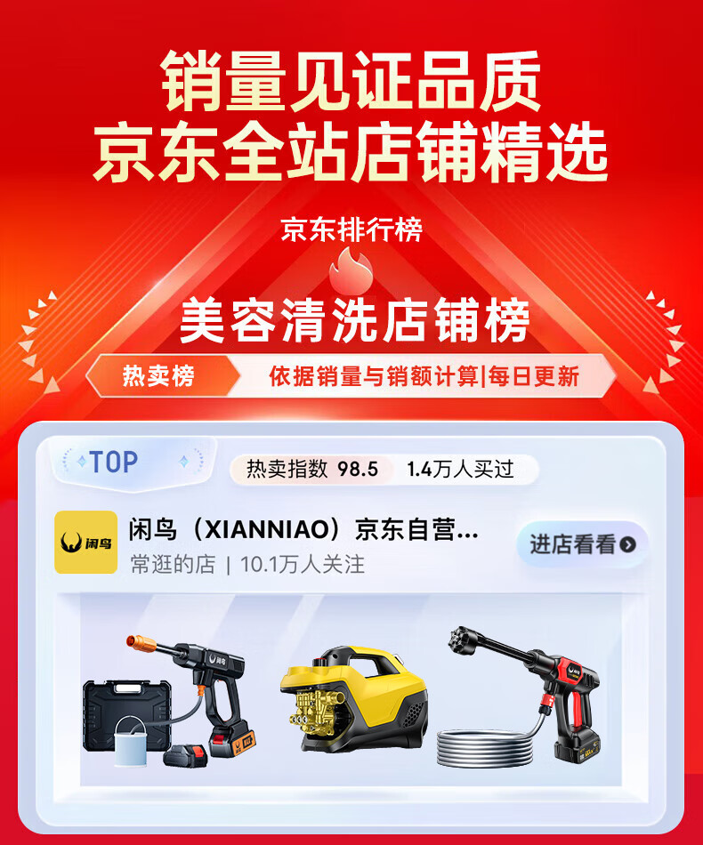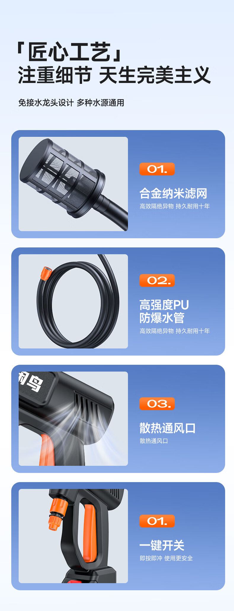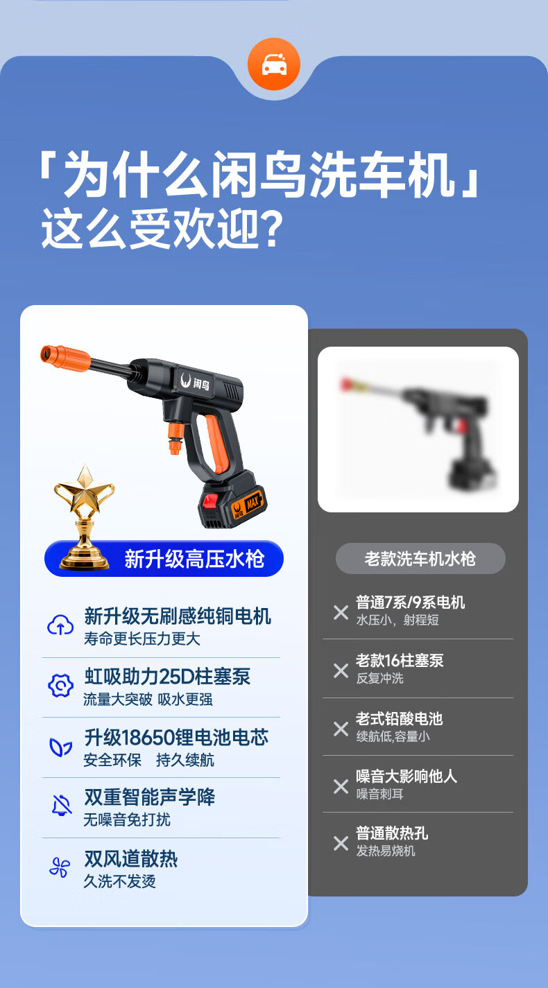 Xianniao high pressure car wash water gun household lithium battery wireless car wash machine portable car wash artifact high power electric car brush pump