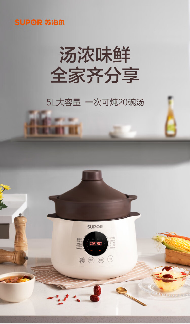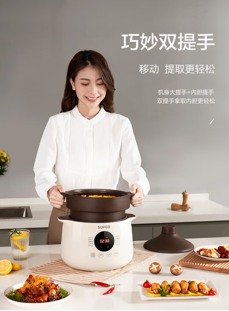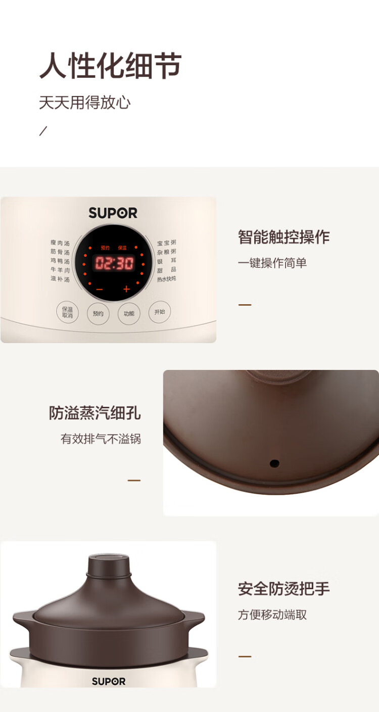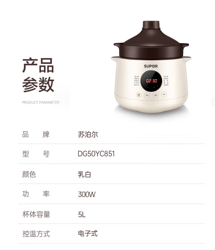 SUPOR electric stew pot, electric stew pot, electric casserole soup pot, stew pot, bird's nest stew pot, purple pottery pot, electric soup pot, porridge artifact, electric cooking pot, household DG50YC851 multi-function pot