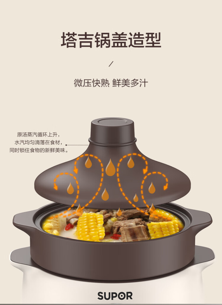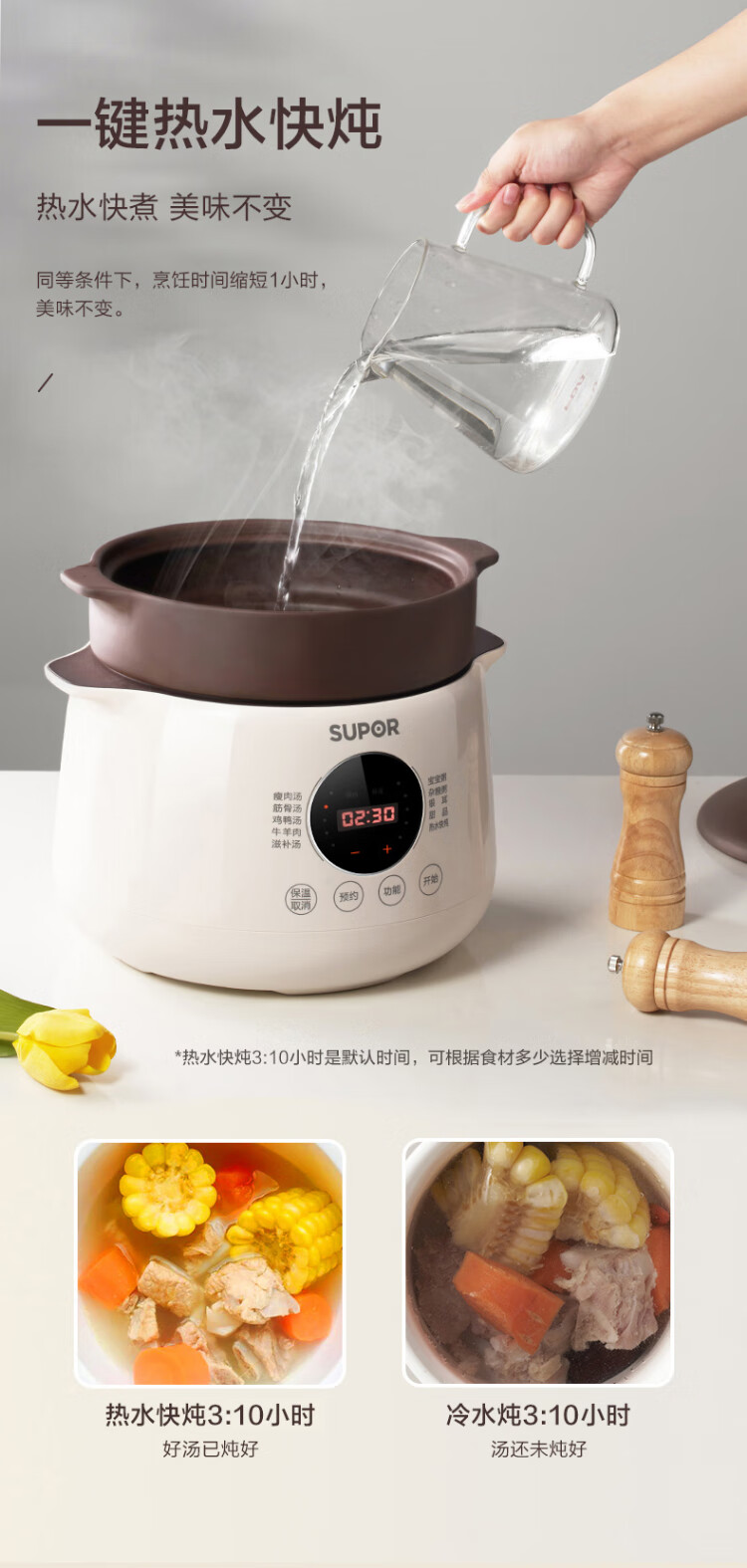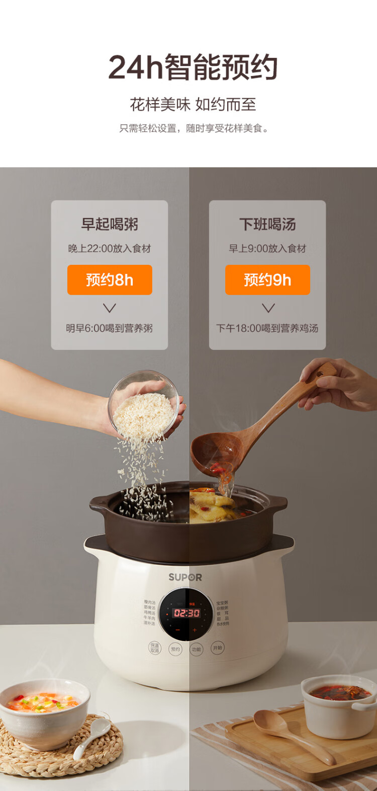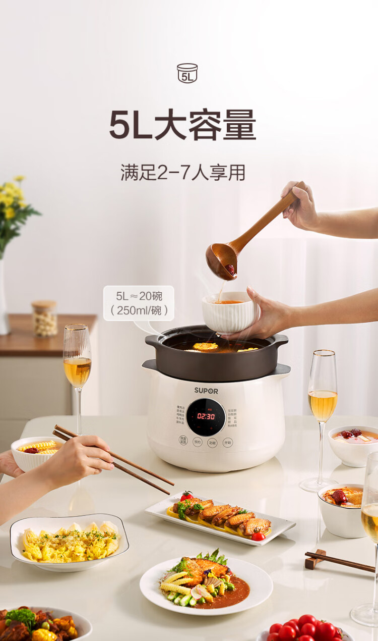 SUPOR electric stew pot, electric stew pot, electric casserole soup pot, stew pot, bird's nest stew pot, purple pottery pot, electric soup pot, porridge artifact, electric cooking pot, household DG50YC851 multi-function pot