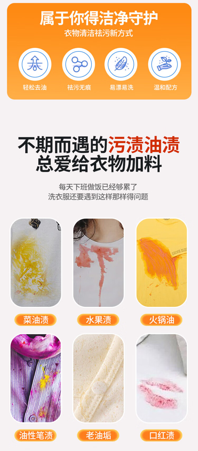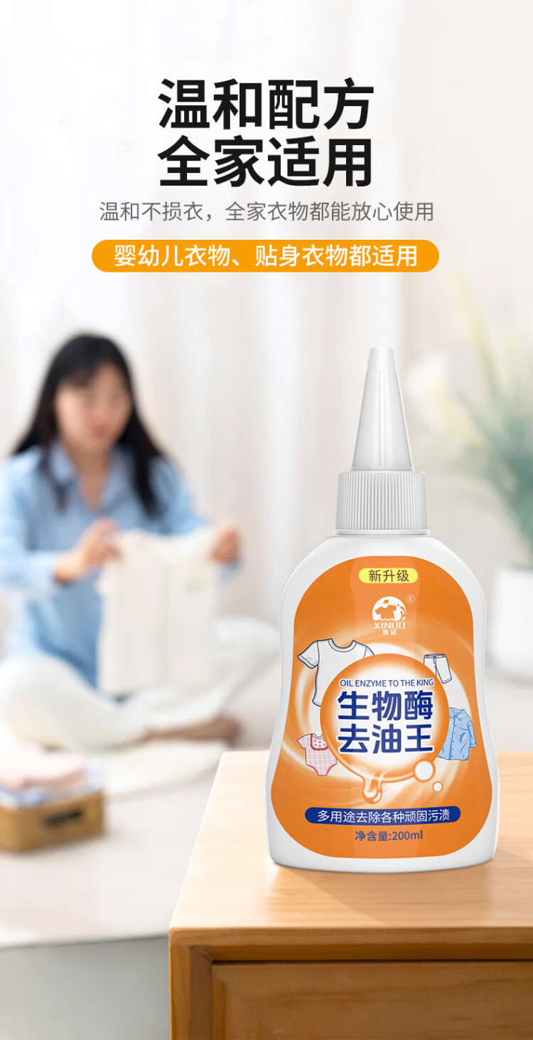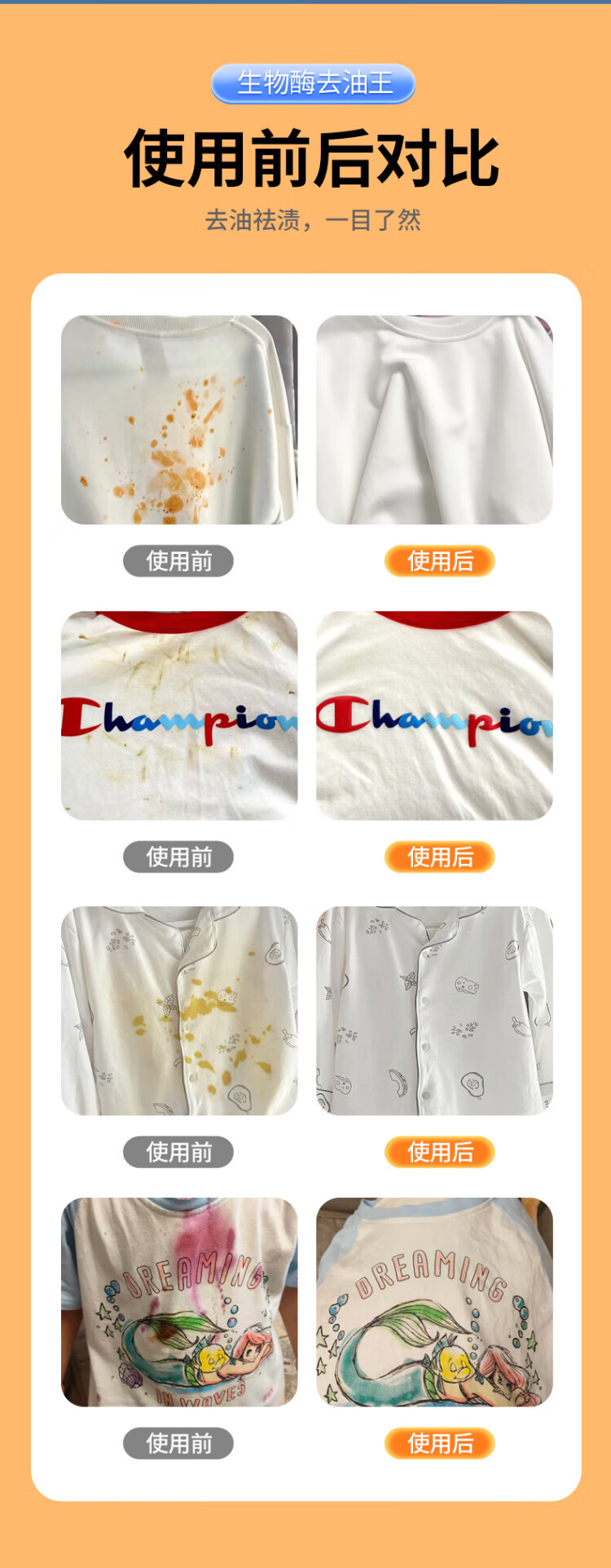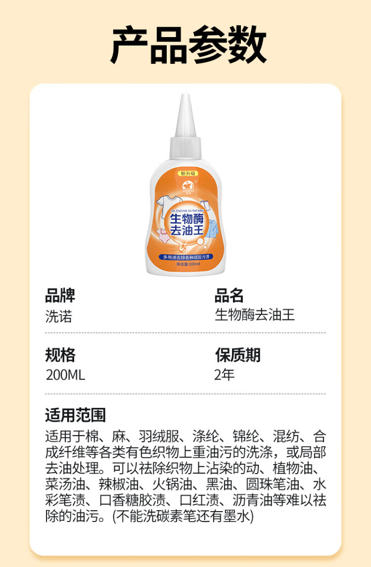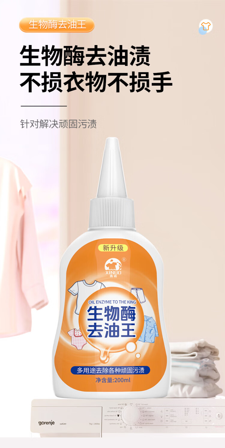 XINUO Clothes Grease Cleaner 200ml Biological Enzyme Oil Remover Collar Remover Yellow, Oil and Contamination Magic Device