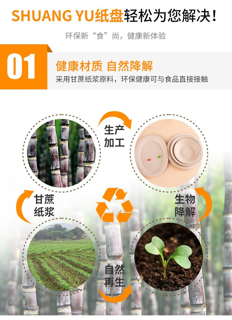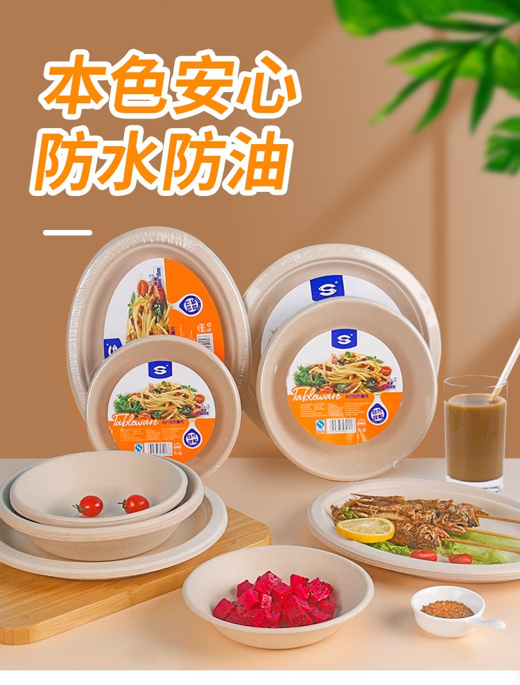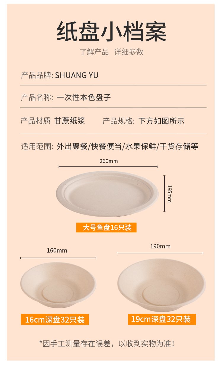 SHUANG YU disposable plates natural color deep plates 30 pieces * 19cm degradable paper plates shallow bowls and chopsticks barbecue picnic environmental protection