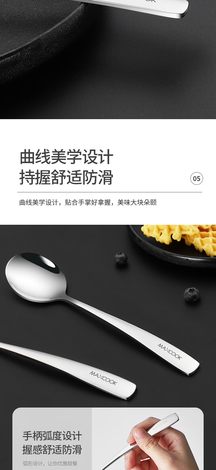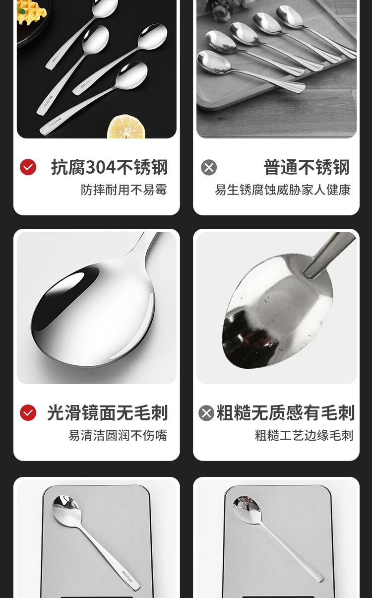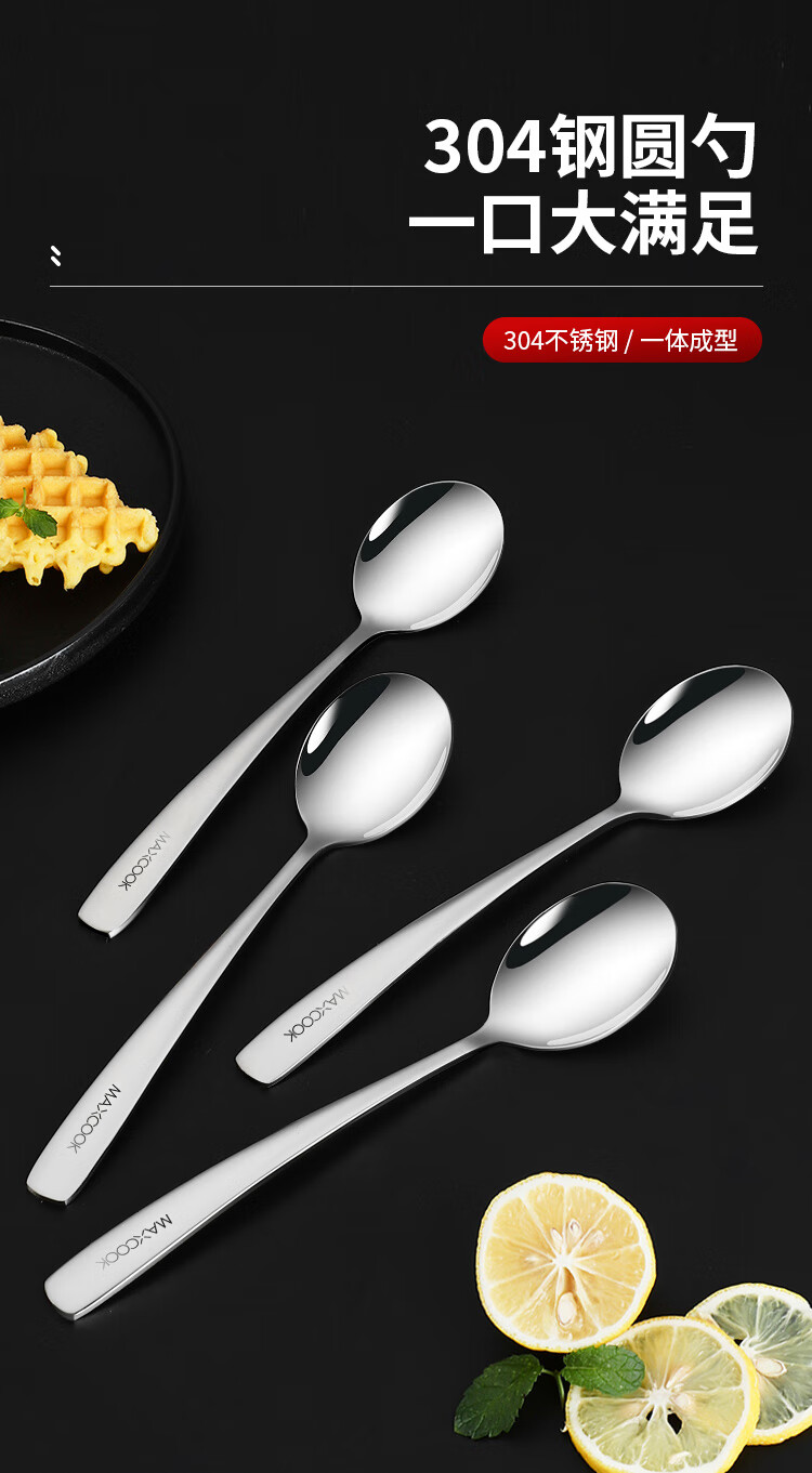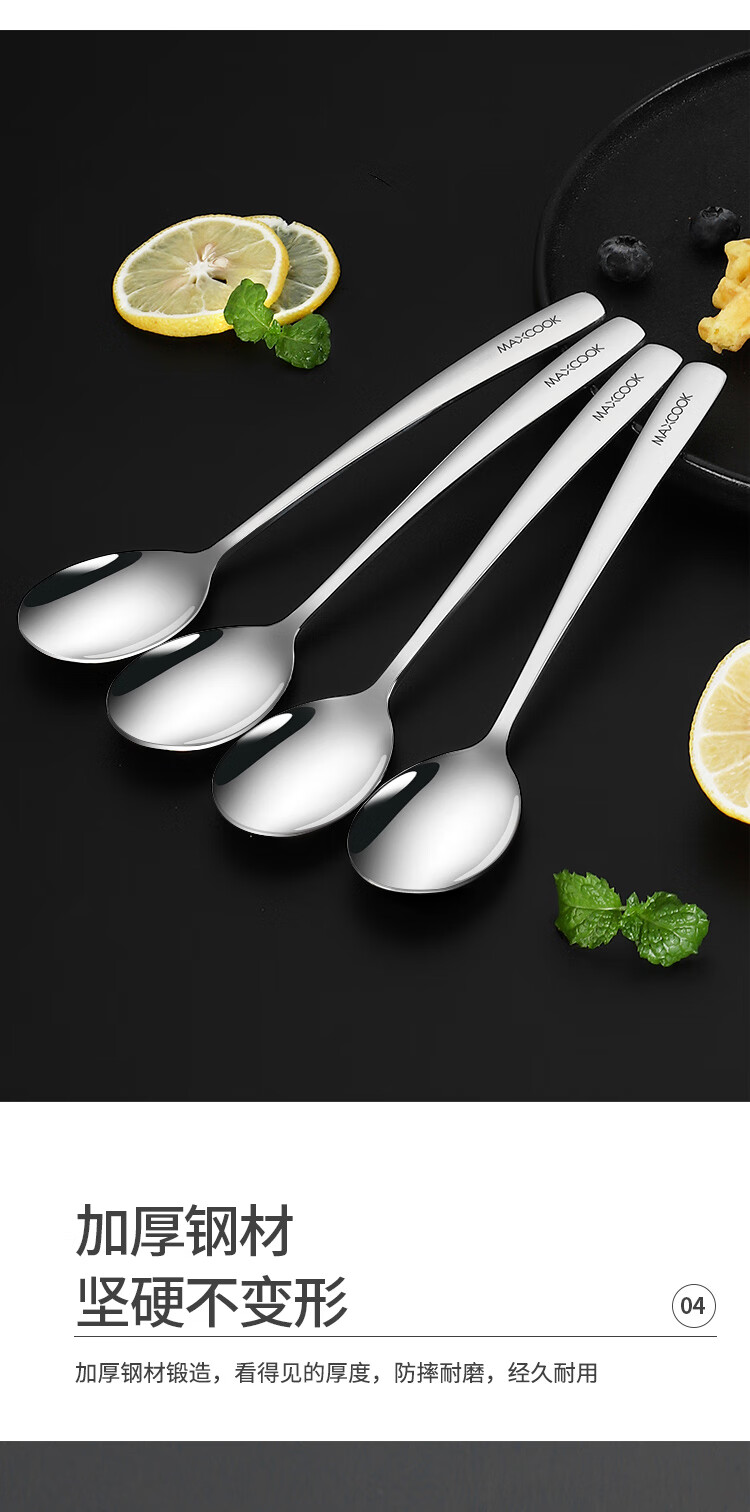 Maxcook 304 stainless steel soup spoon, large thickened spoon, round bottom table spoon, rice spoon, soup spoon, 4-piece set MCGC9533