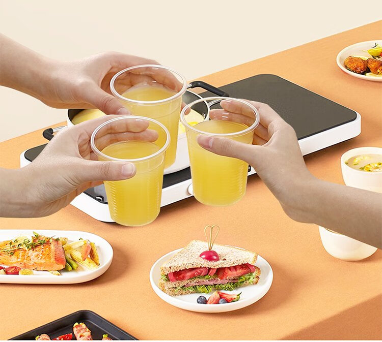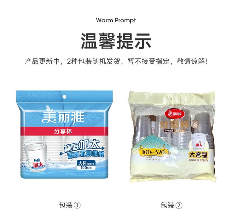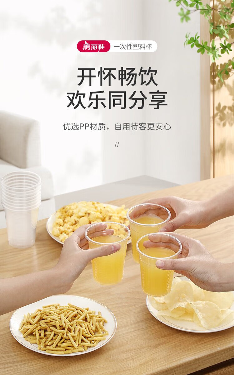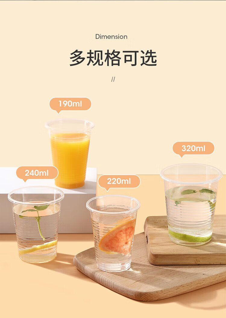 Meiya disposable cups plastic cups 320ml*100 thick transparent beverage cups small household