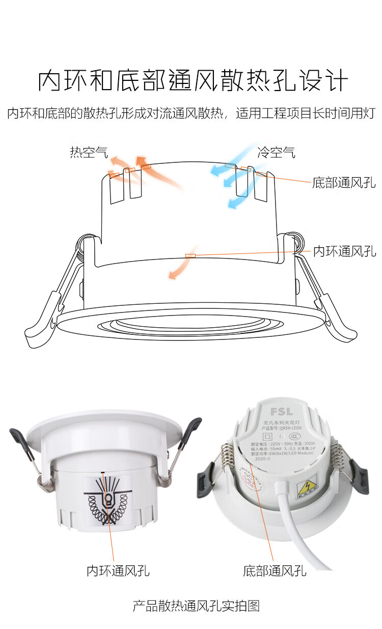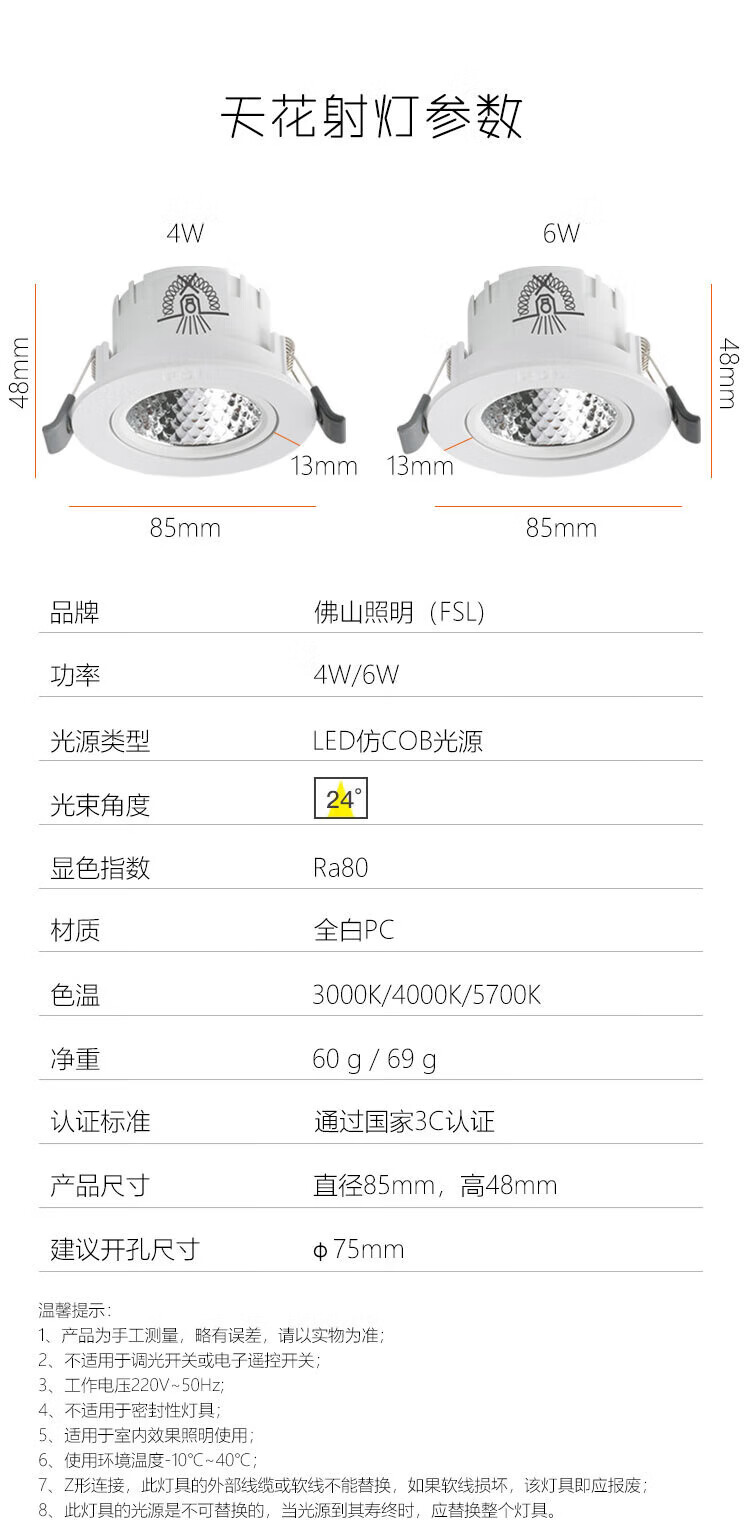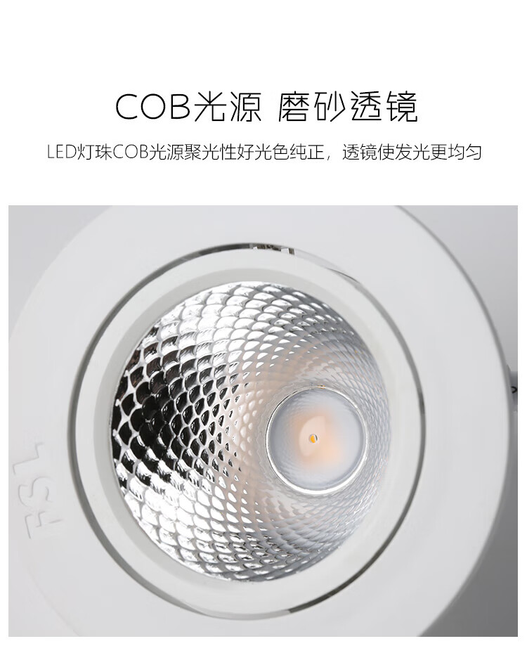 Foshan Lighting (FSL) led spotlight ceiling light COB lamp bead angle adjustable background wall exhibition hall lighting deep anti-glare spotlight COB lamp bead opening 9.5cm 9W warm white light 4000K