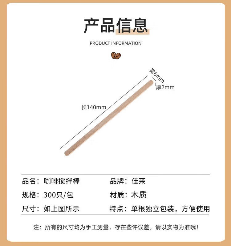 Jiamo Stirring Stick Disposable Coffee Stirring Stick Independent Pack Wooden Coffee Stirring Stick 14cm 300 Count