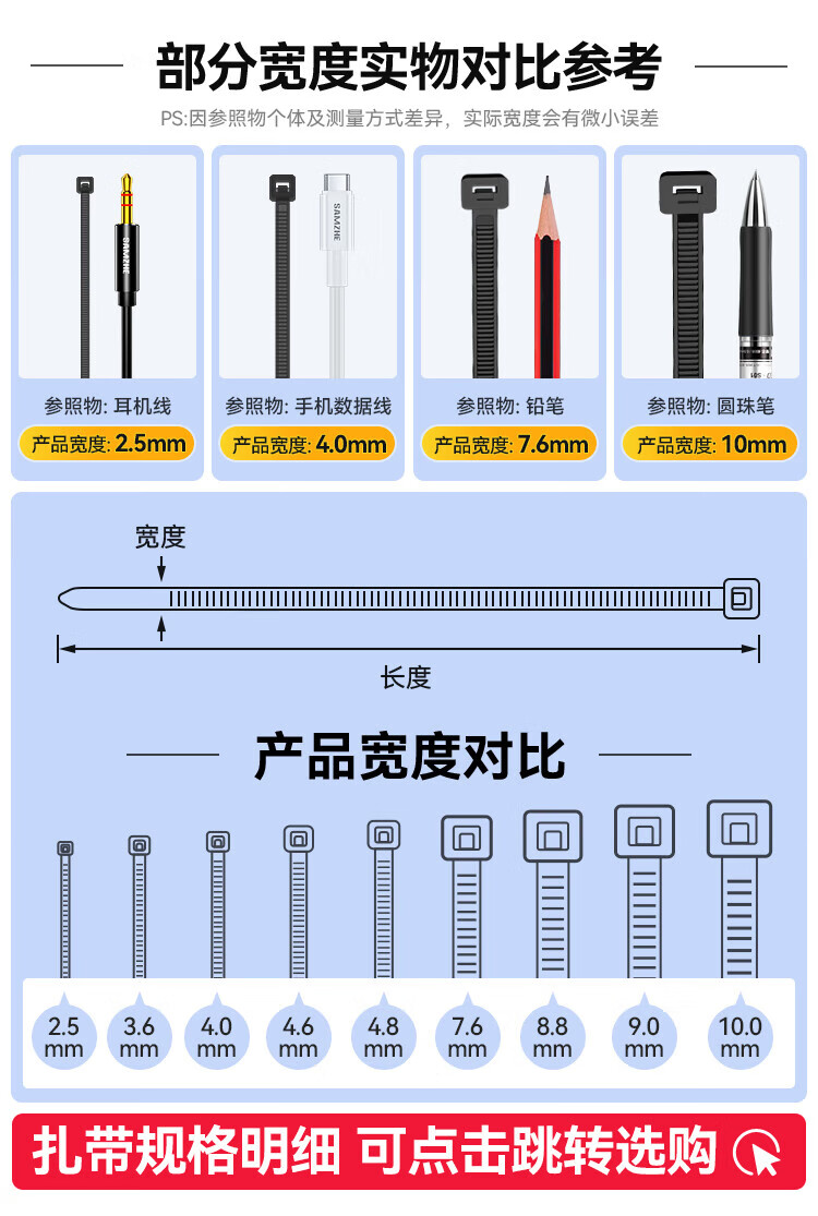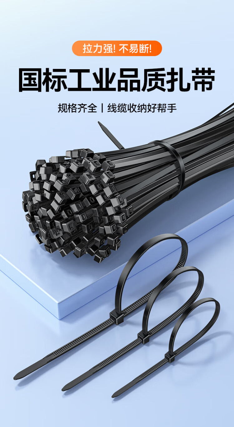 Shanze selbstsichernder Nylon-Kabelbinder, große Größe, 4,8 x 350 mm, Kabelmanagementband, industrielle Bindung, fester Kabelbinder, schwarz, ca. 100 Stück/Beutel ZD-48