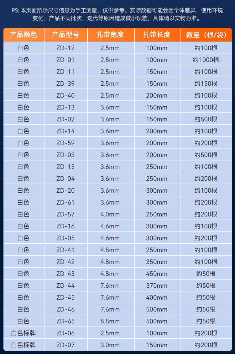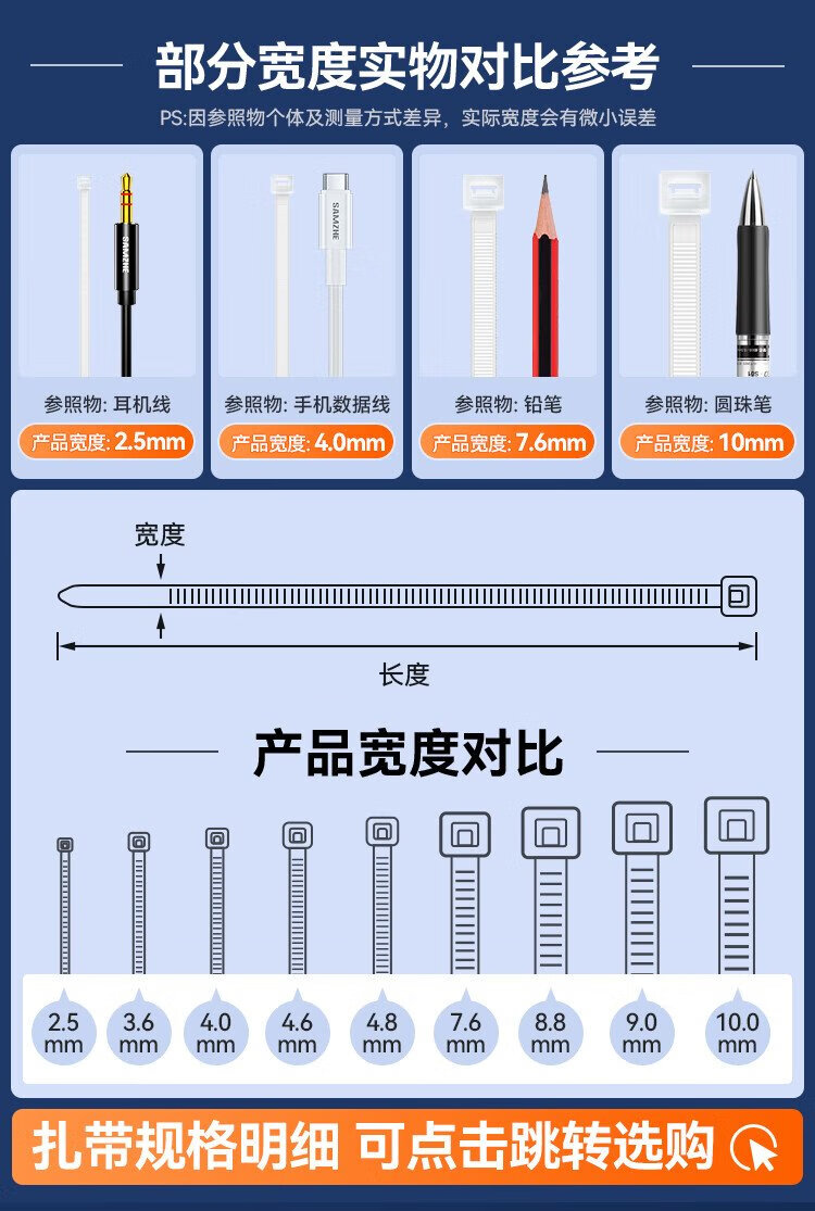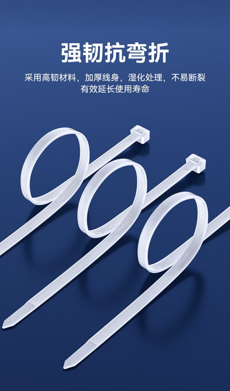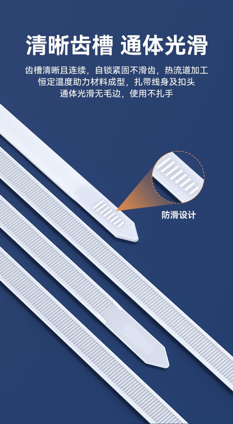 山泽自锁式尼龙扎带 4.8*450mm 大号国标扎带理线带束线捆扎固定绑带 约50根/袋ZD-43