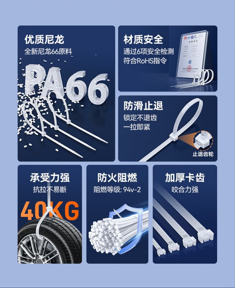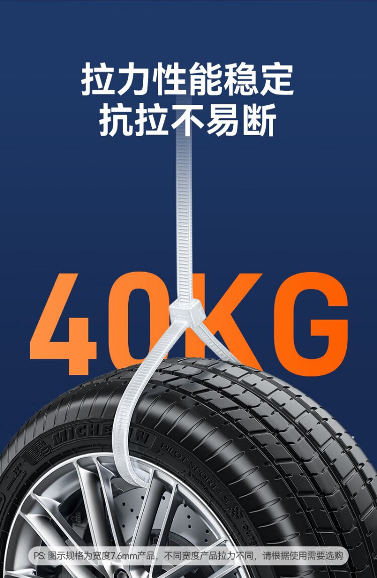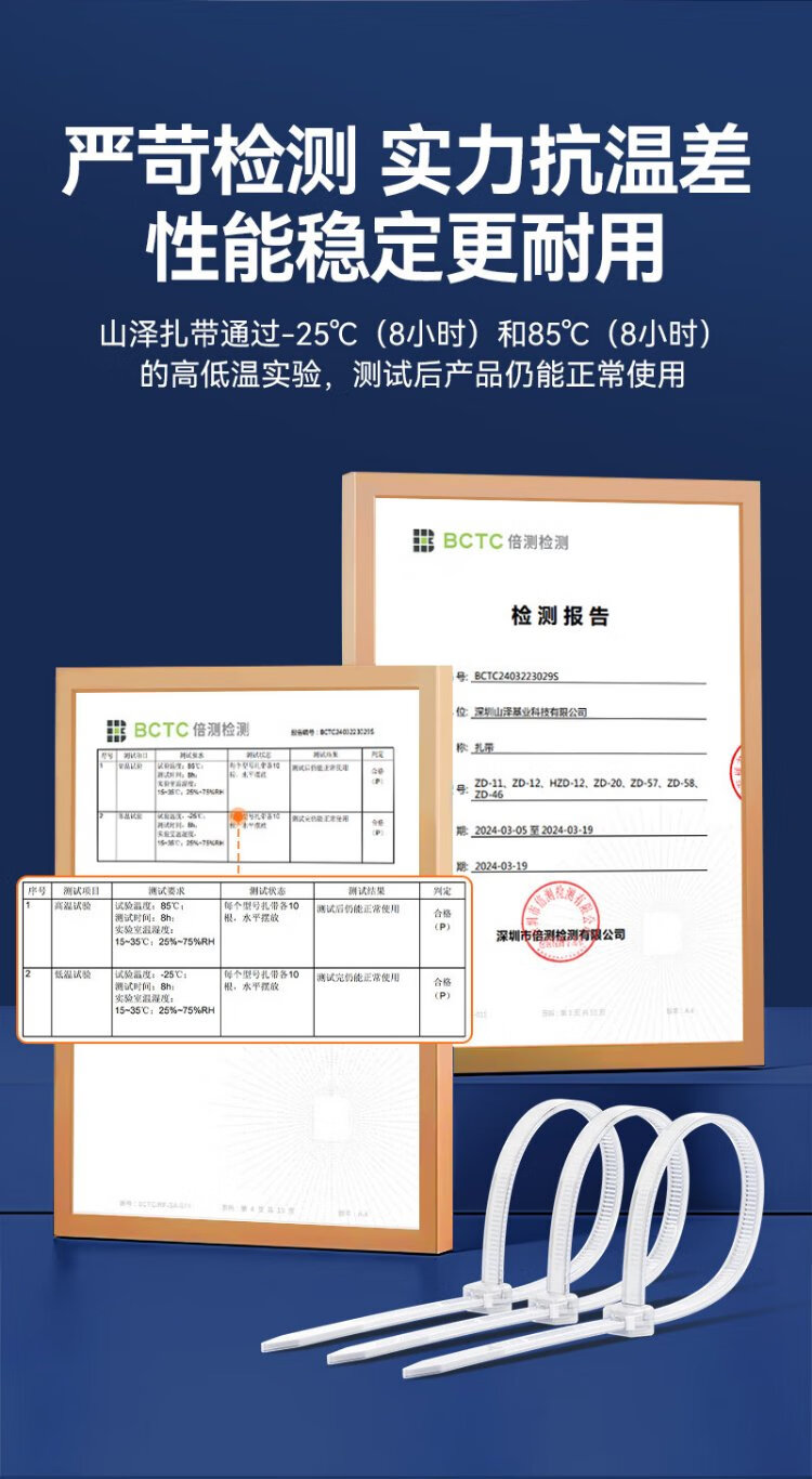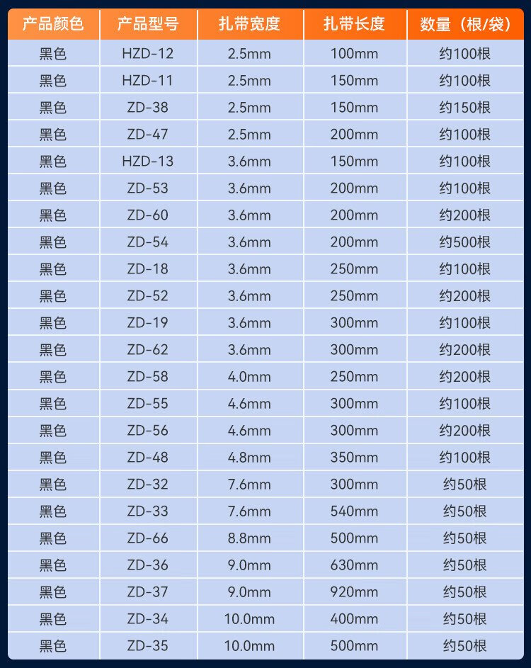 山泽自锁式尼龙扎带 4.8*450mm 大号国标扎带理线带束线捆扎固定绑带 约50根/袋ZD-43