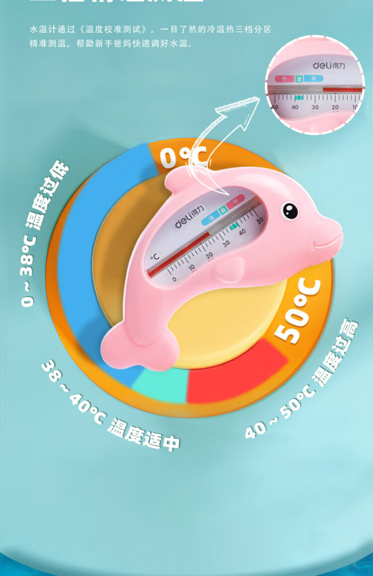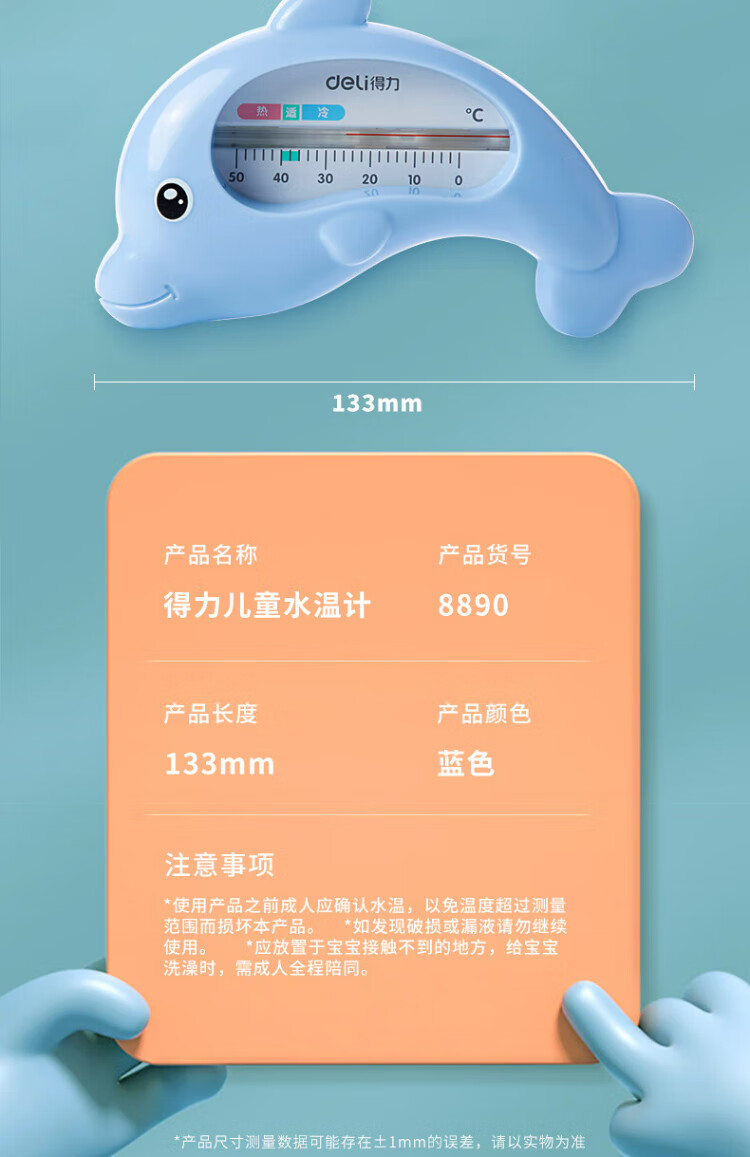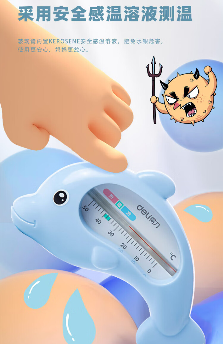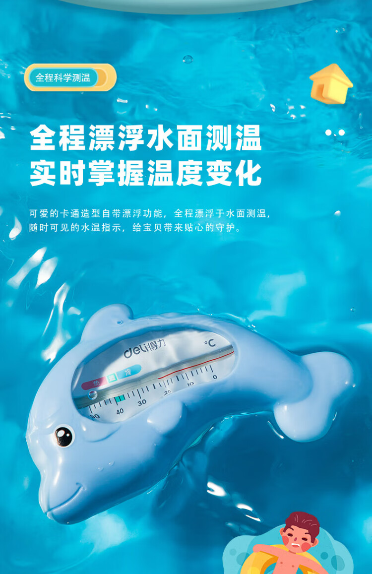 Deli children's water thermometer baby bath thermometer accurate temperature measurement dolphin shape childlike and cute blue 8890