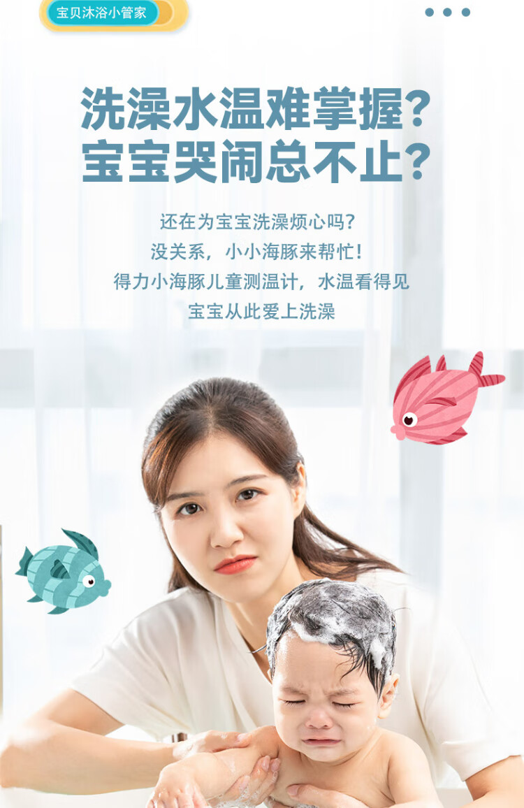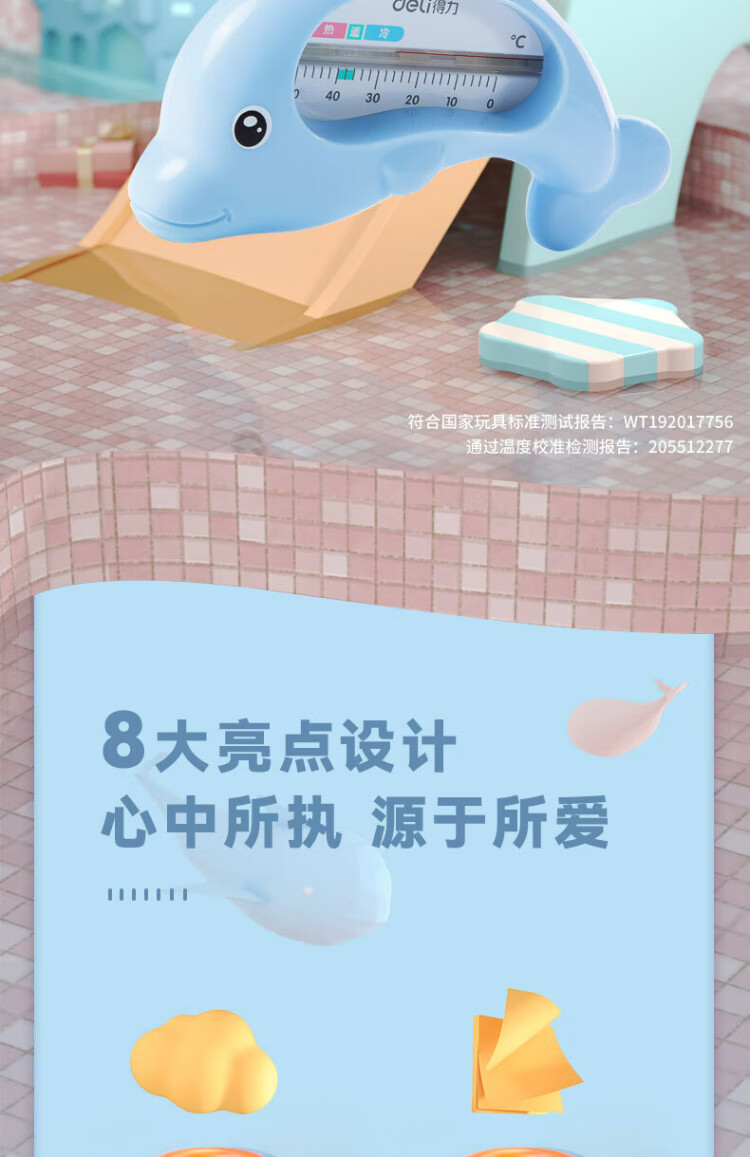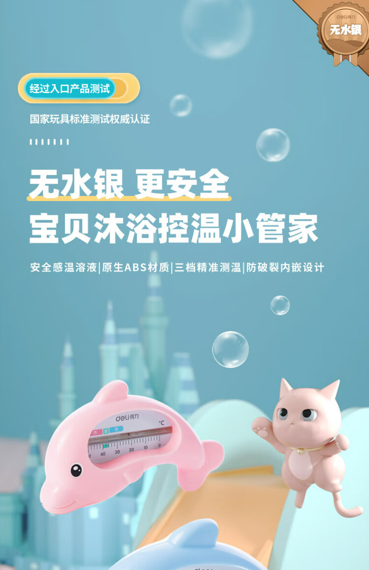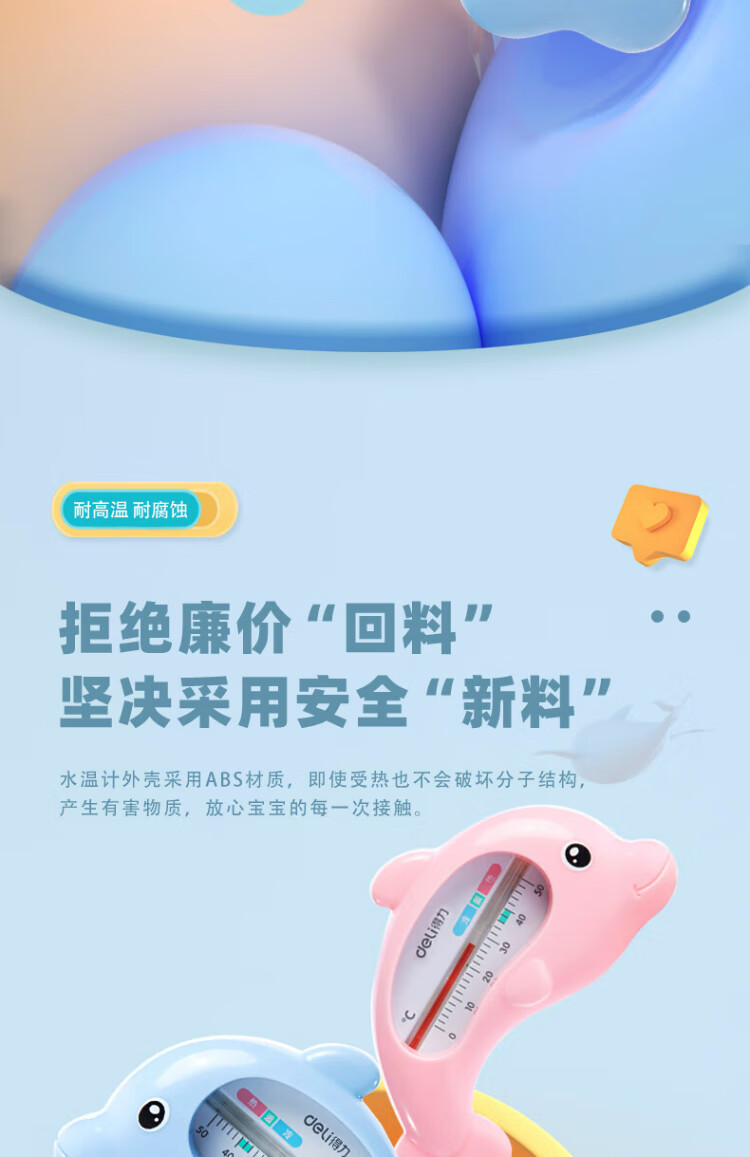 Deli children's water thermometer baby bath thermometer accurate temperature measurement dolphin shape childlike and cute blue 8890