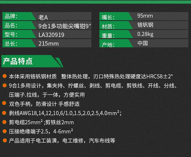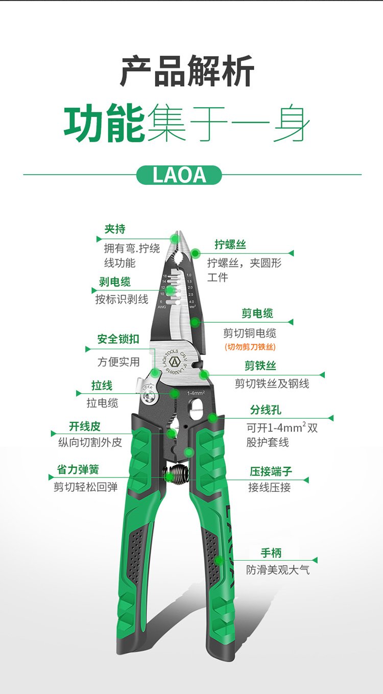 Old A (LAOA) LA320919 pointed nose wire stripper multi-functional wire cutter stripping branch terminal crimping pliers