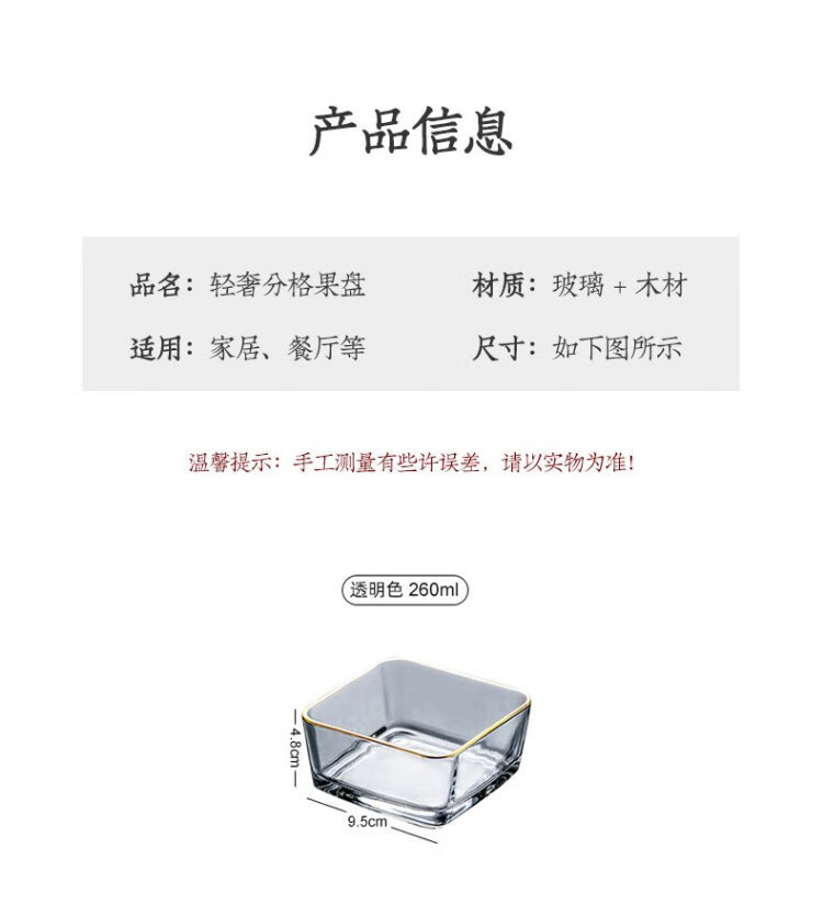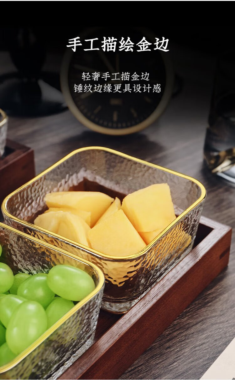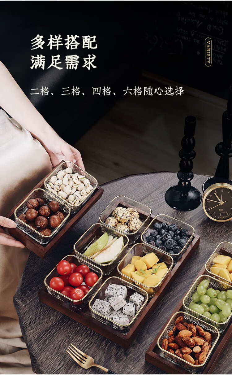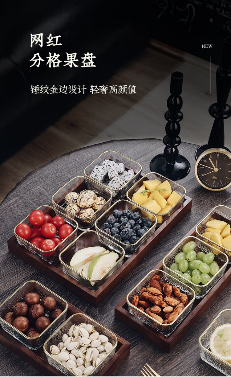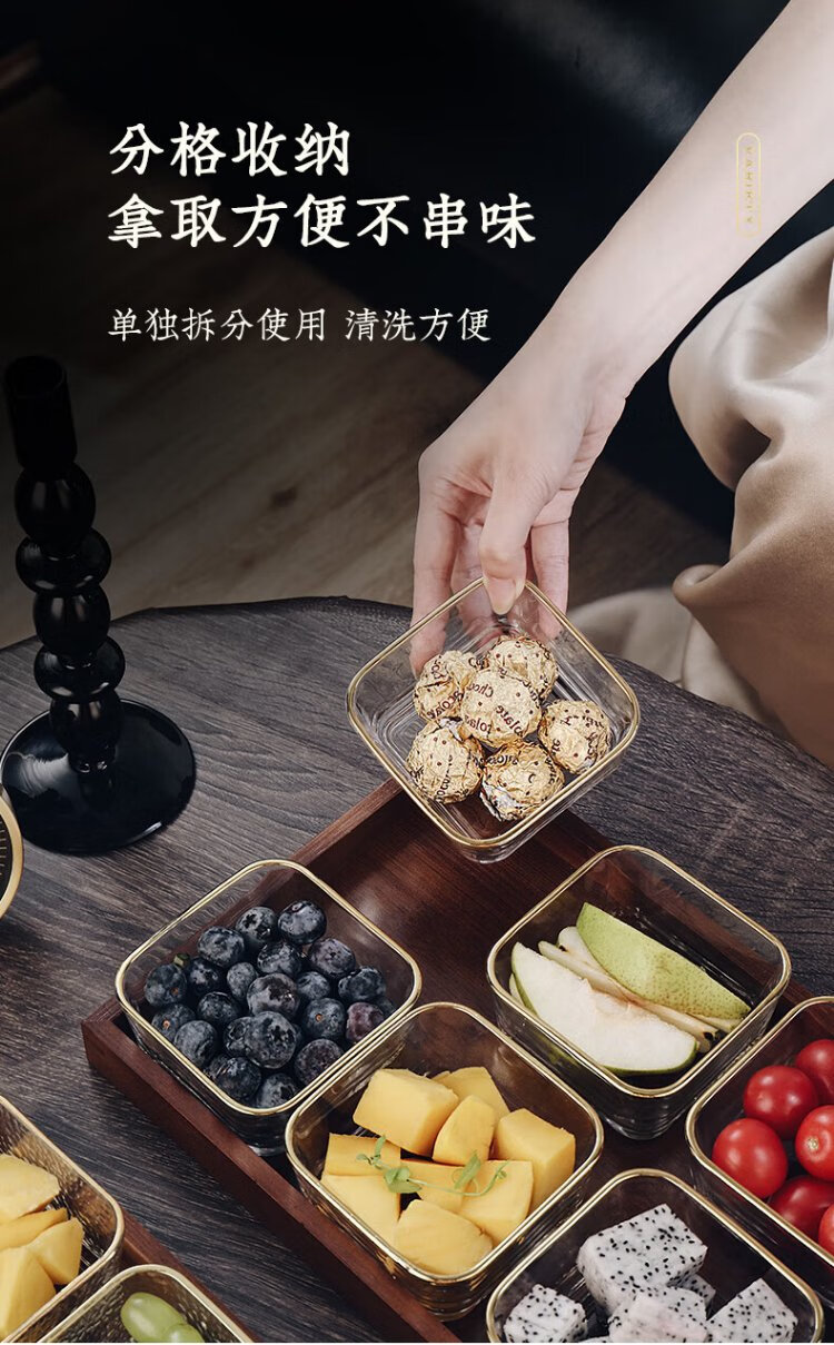 Genasi glass fruit plate living room light luxury creative snack compartmented dry fruit plate Nordic ins internet celebrity snack candy plate