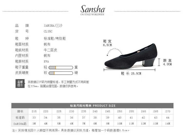 Sansha (Sansha) Sha ethnic belly dance canvas leather sole ballet shoes teacher practice shoes examination shoes CL35C black 39