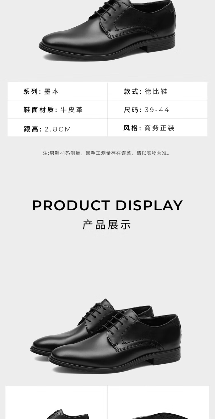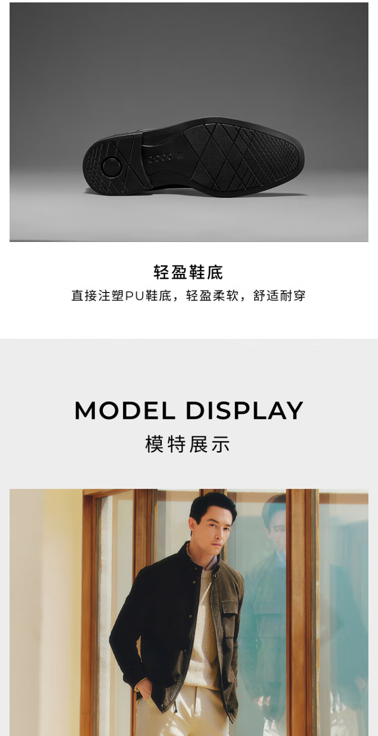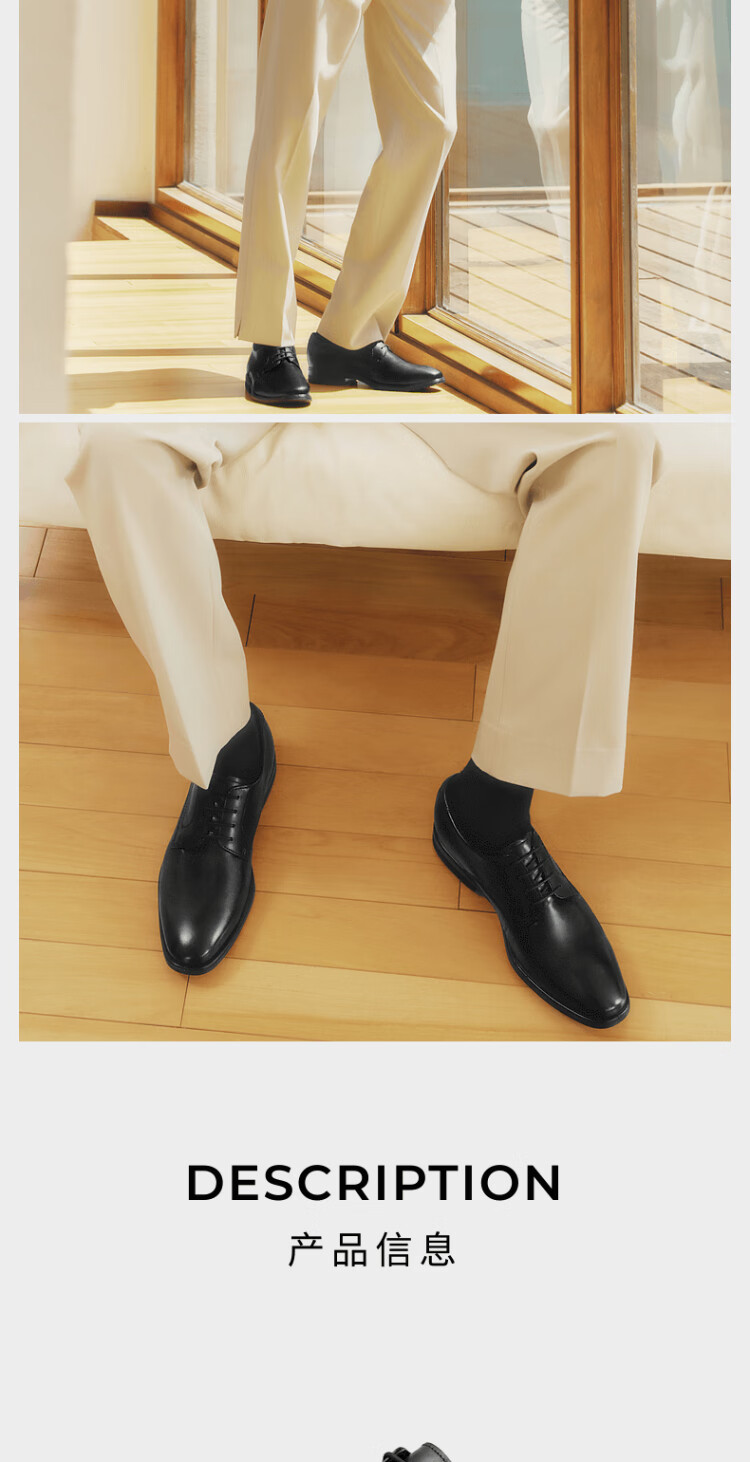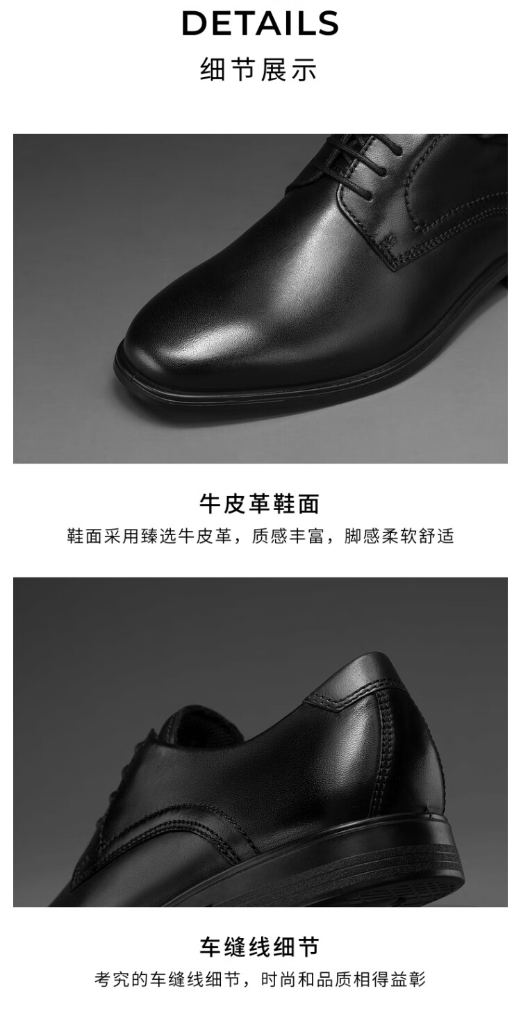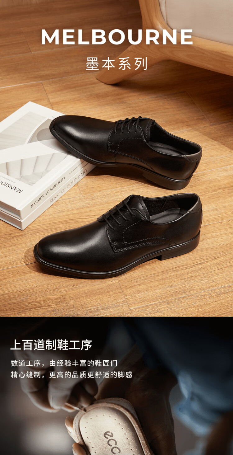 ECCO Derby Shoes Cowhide Light Luxury Business Formal Leather Shoes for Men Moben 621634 Black/Magnetic Gray 41