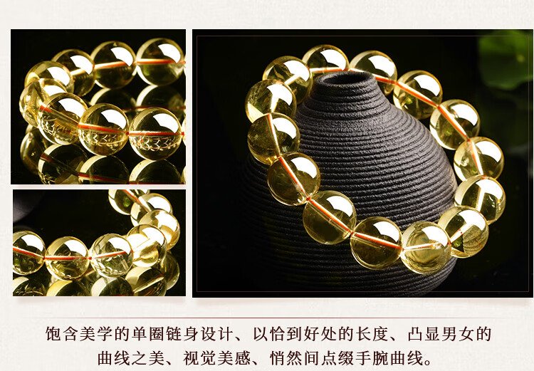 Shi Yue Jewelry Boutique 11-12mm Natural Citrine Bracelet Birthday Beads Bracelet for Men and Women Crystal Agate