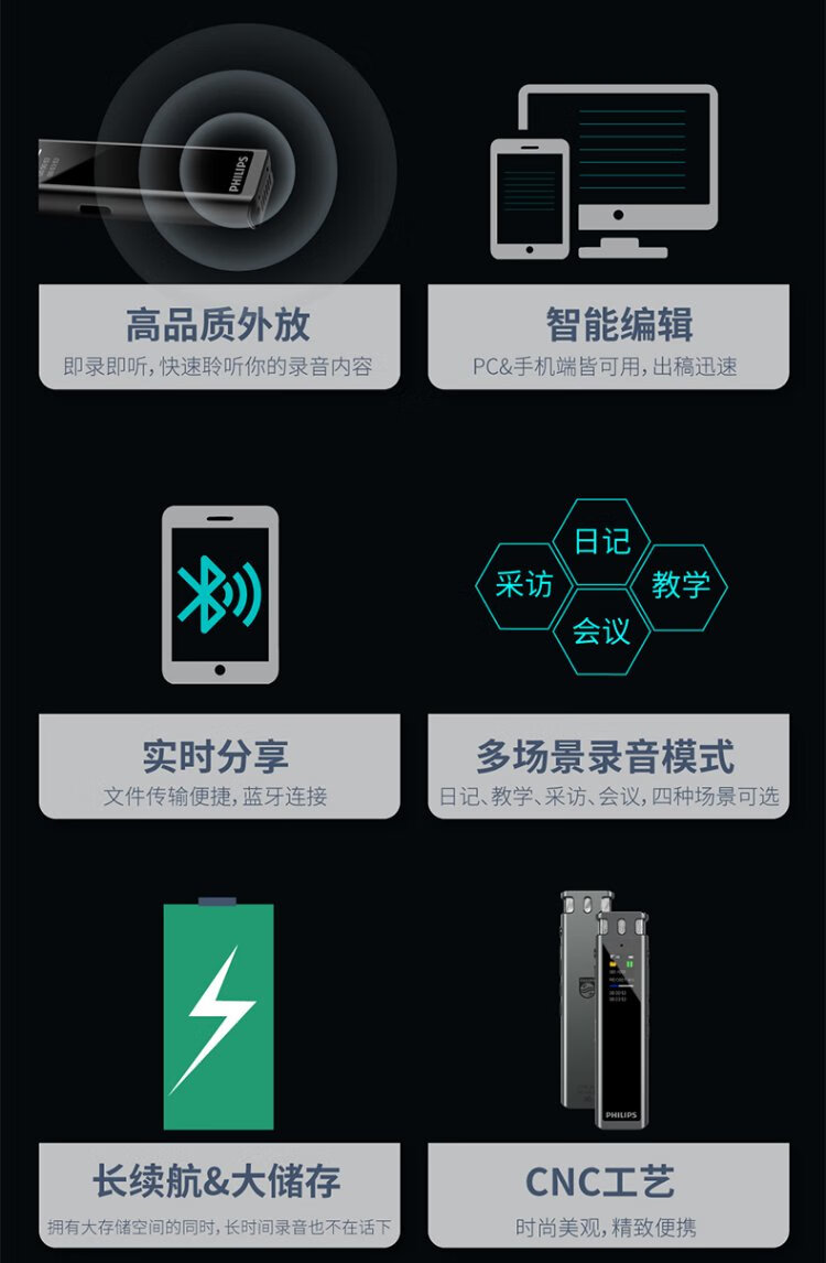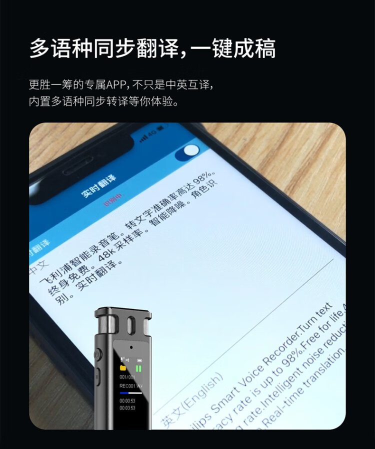 Philips (PHILIPS) Recording Pen VTR5260 Professional Intelligent AI Conference Business Noise Reduction Recorder One-click Recording Voice to Text Evidence Collection Compact Portable Device 32G