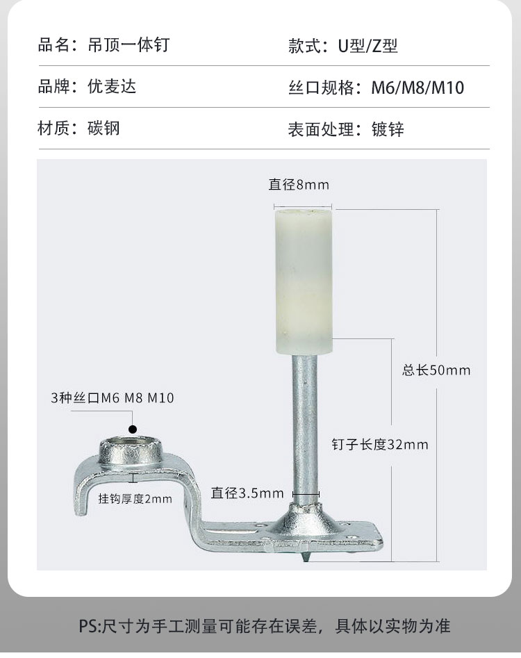Umaida (20 pcs) special nails for ceilings, carpentry ceiling ventilation duct ceiling artifact all-in-one nail shooting U-shaped M10 Y477