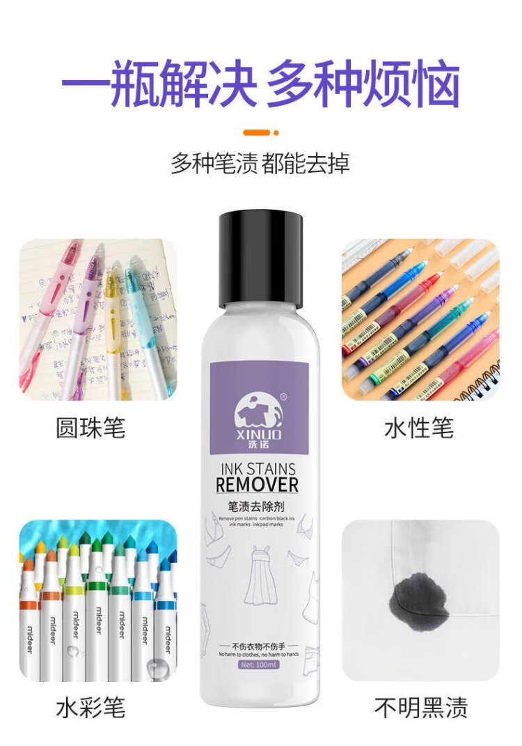 XINUO pen stain remover 100ml clothes removal pen stain watercolor ink marker carbon cleaning artifact ink cleaning