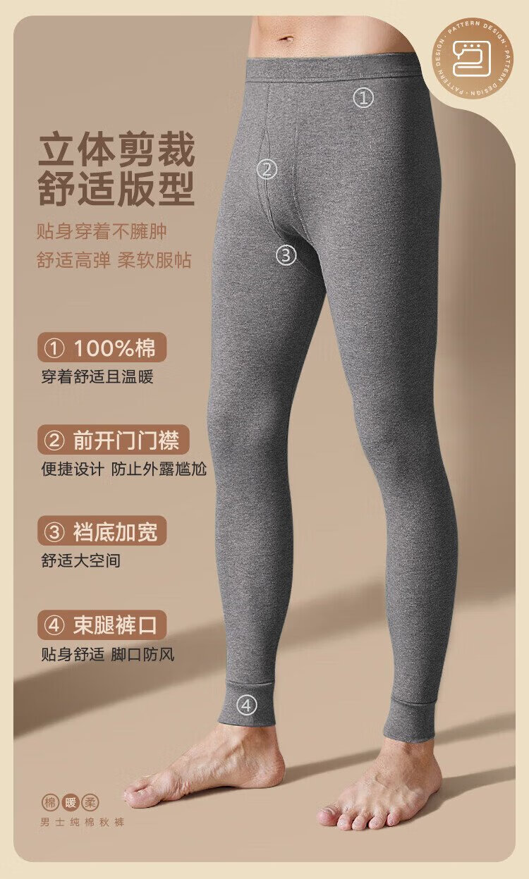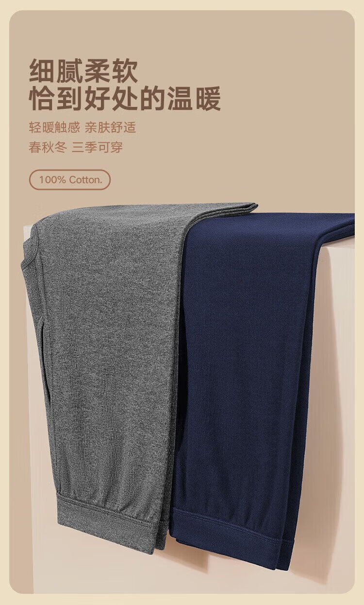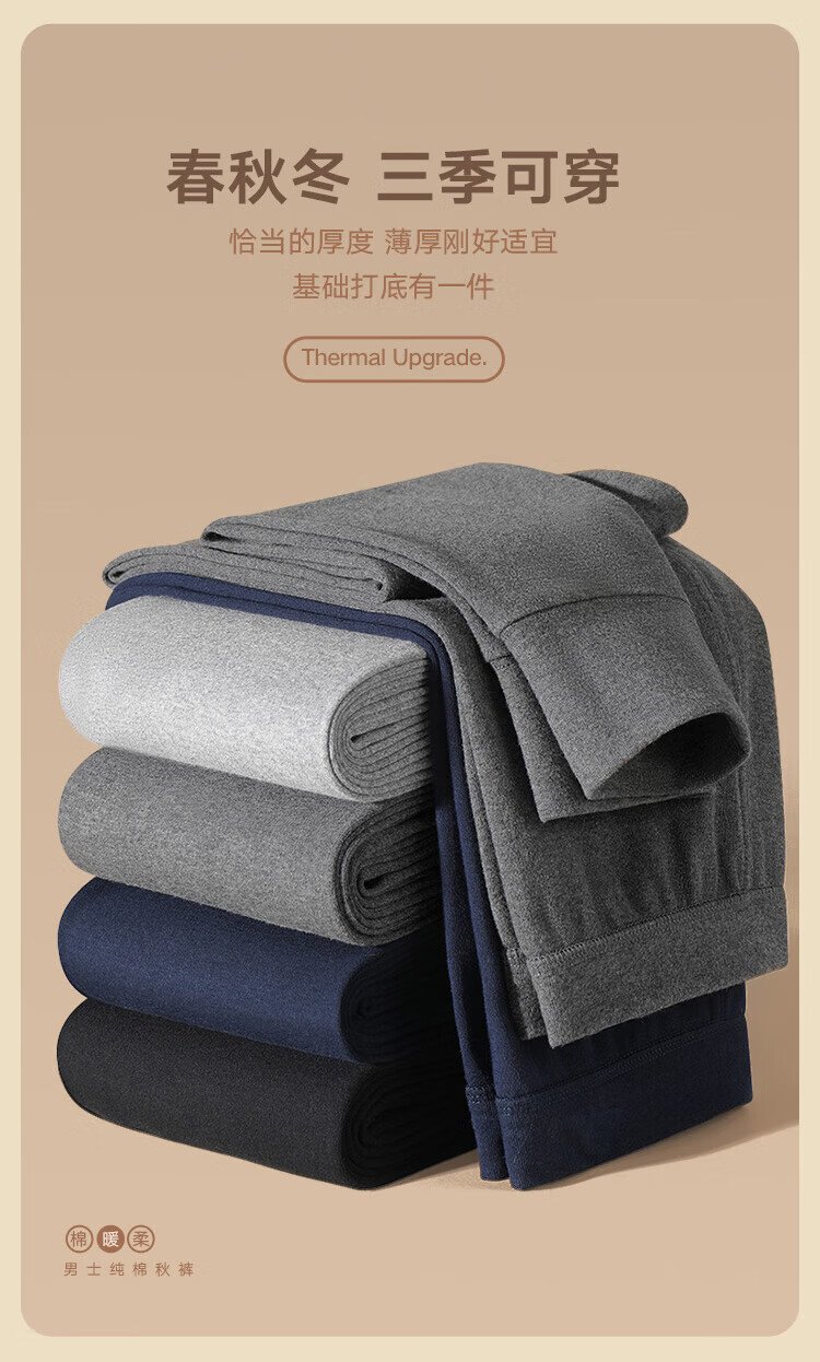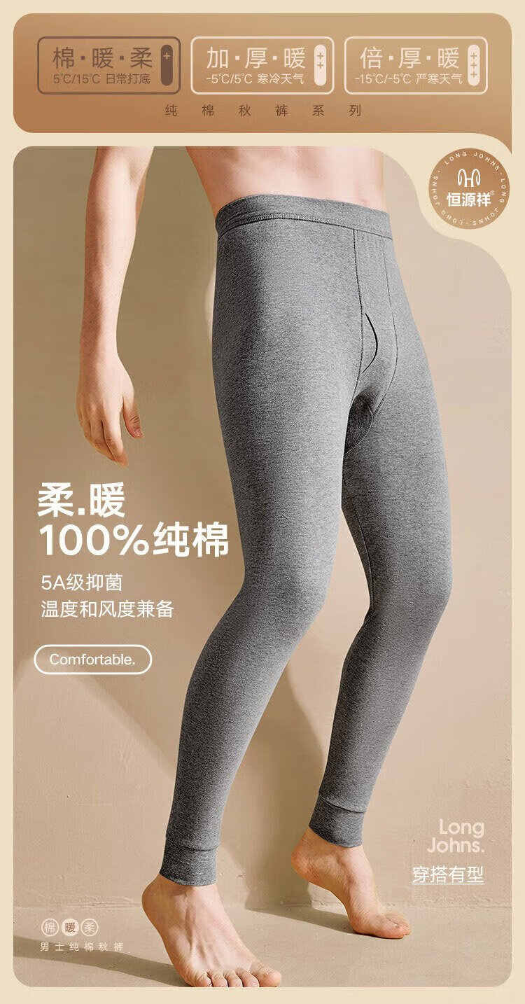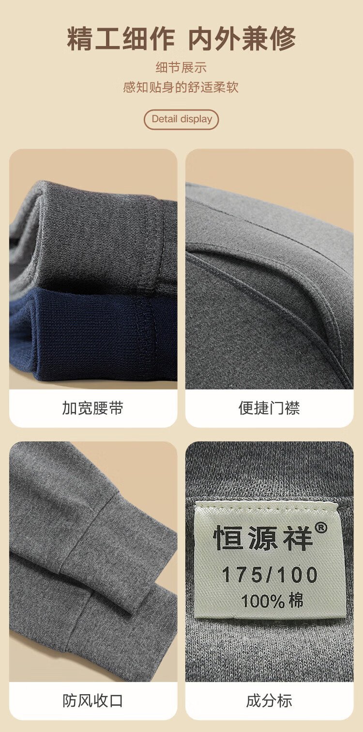 Hengyuanxiang Autumn Pants Men's Pure Cotton Antibacterial Fashion Two-Piece Warm Pants Autumn and Winter Men's Cotton Leggings