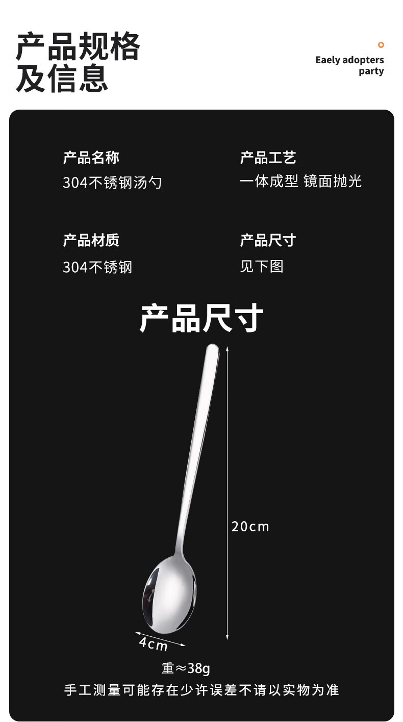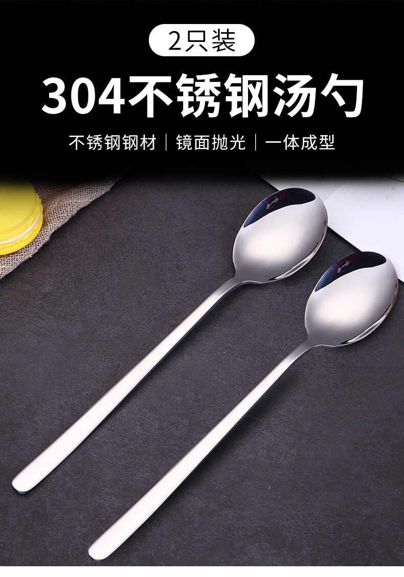 Shihua 304 stainless steel soup spoon 2-pack thickened spoon extended table spoon rice spoon round spoon spoon tableware