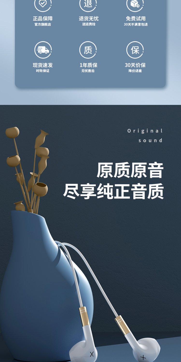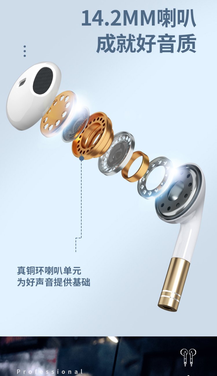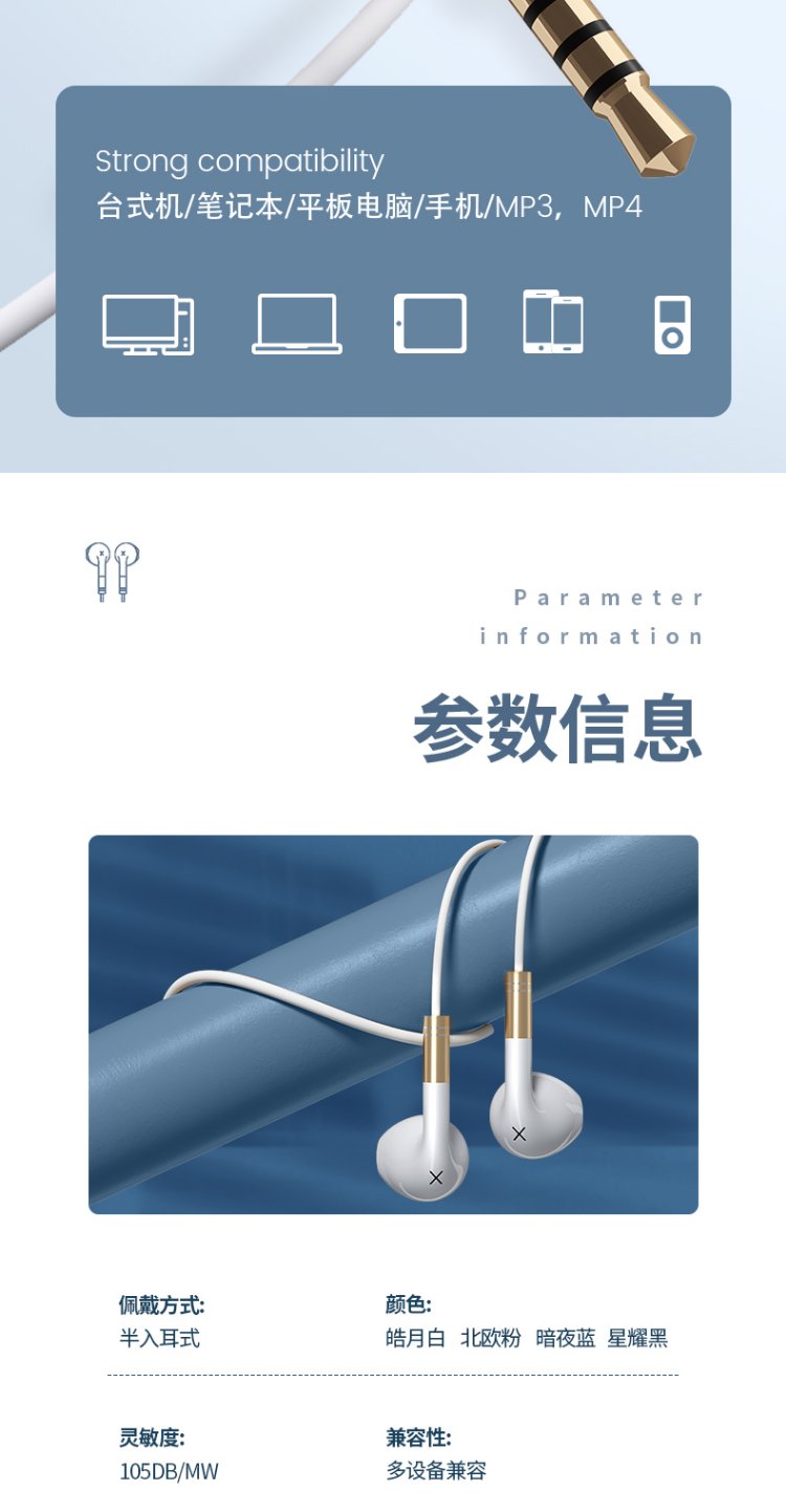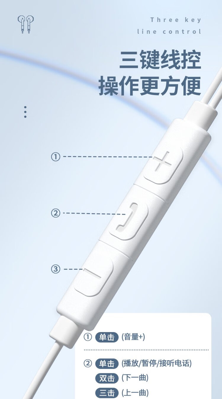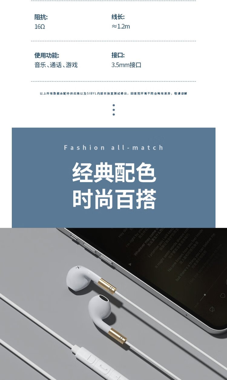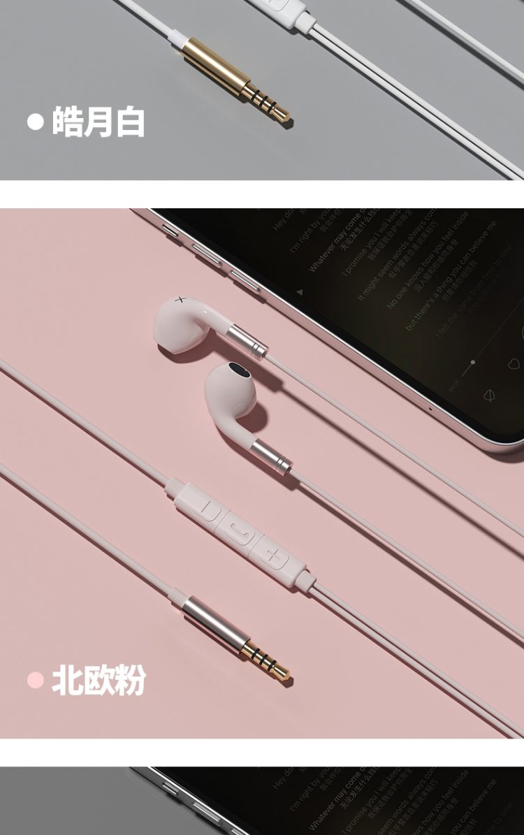 Sibyl wired earphones semi-in-ear noise reduction call karaoke girl mobile phone computer Nordic powder丨three-button wire control丨send storage box