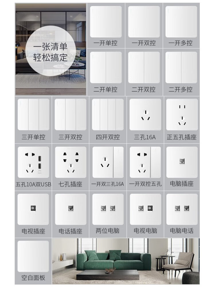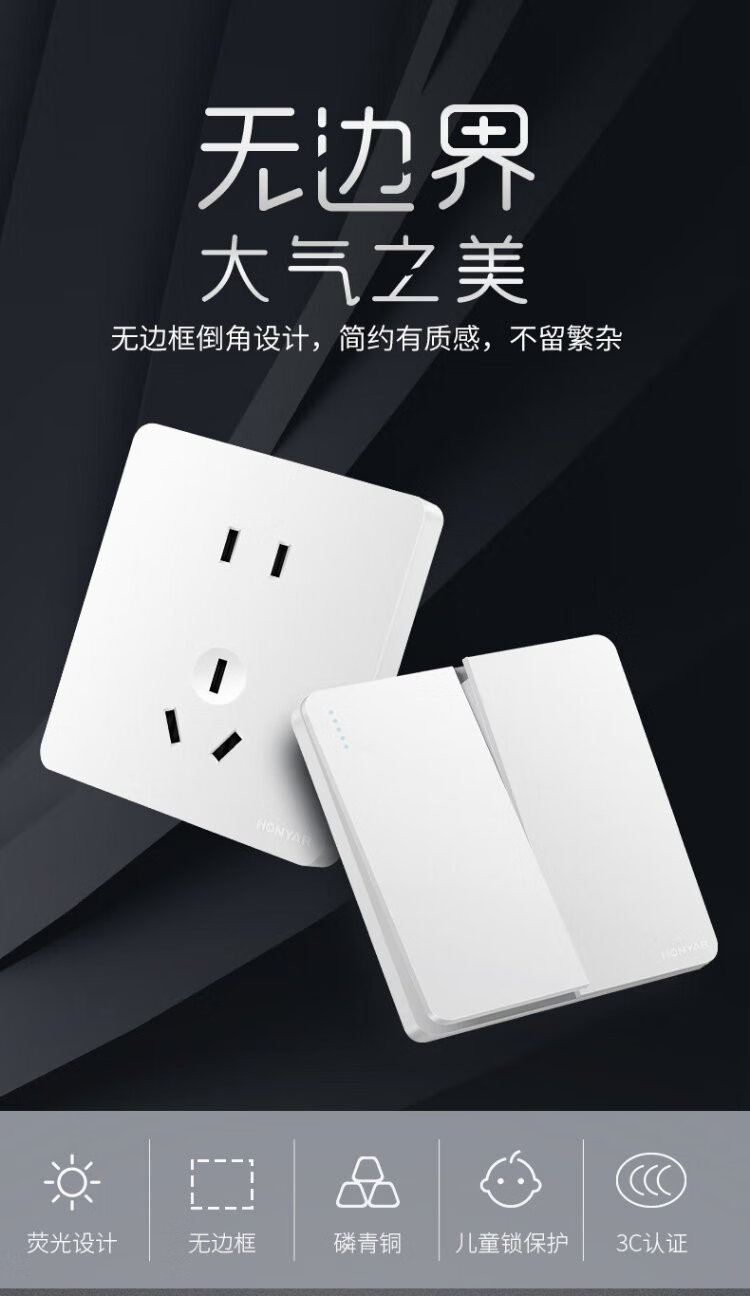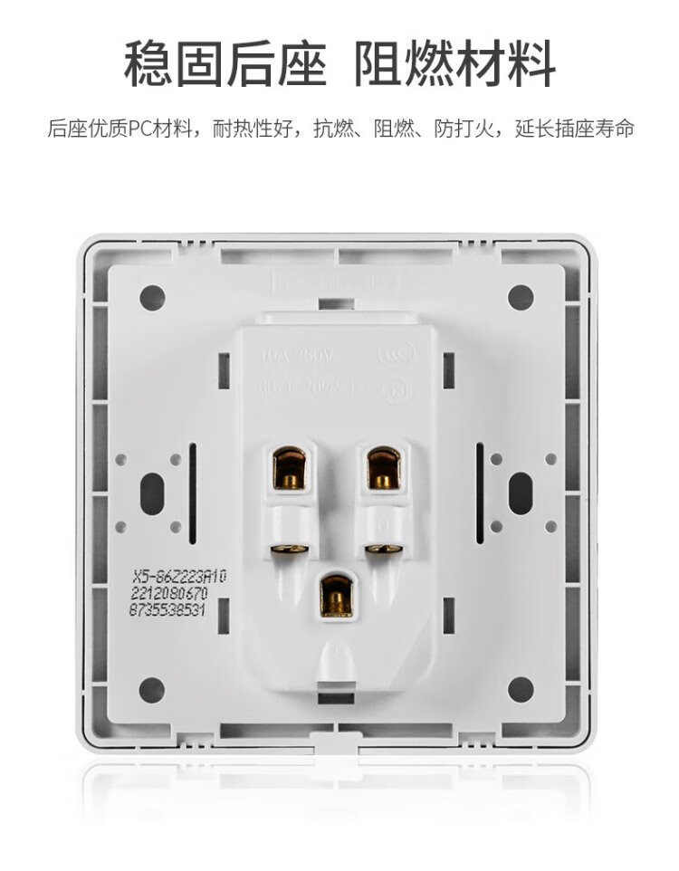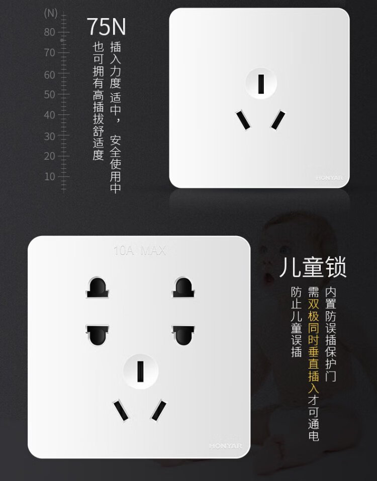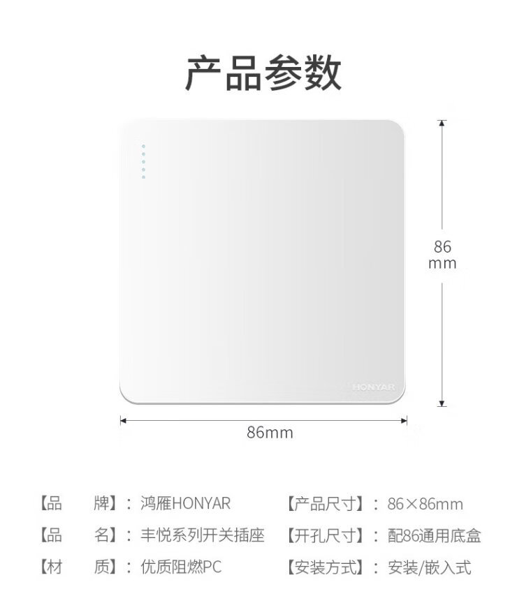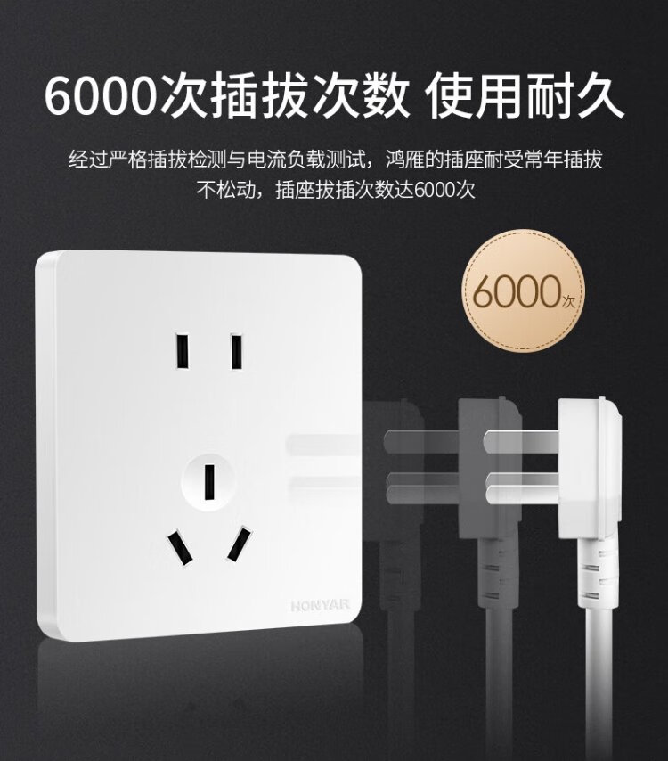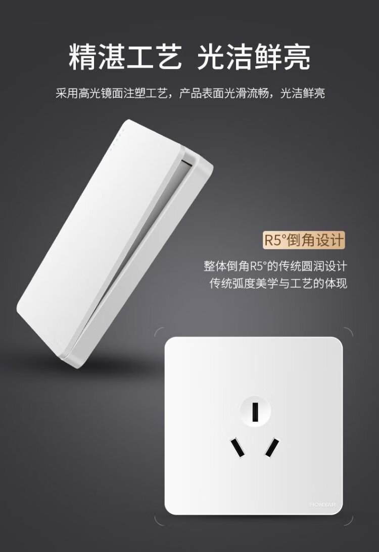 Hongyan switch socket panel X5 series white 10A two-three plug oblique five-hole 86 type concealed wall power socket