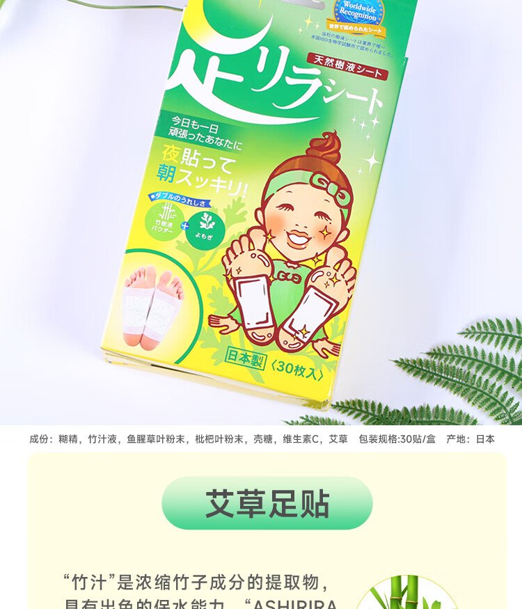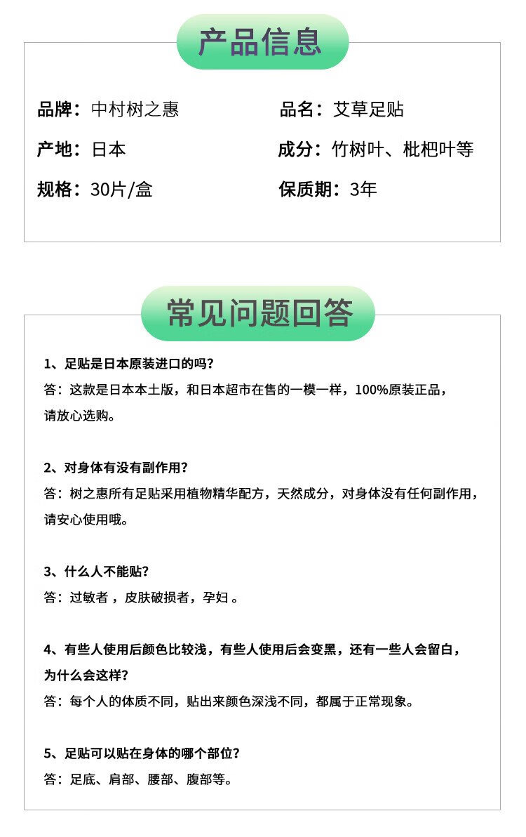 Tree Eishu's Megumi Foot Patch Mugwort Dehumidifying Natural Bamboo Sap Nakamura Foot Beauty Sleeping Patch imported from Japan 30 patches/box