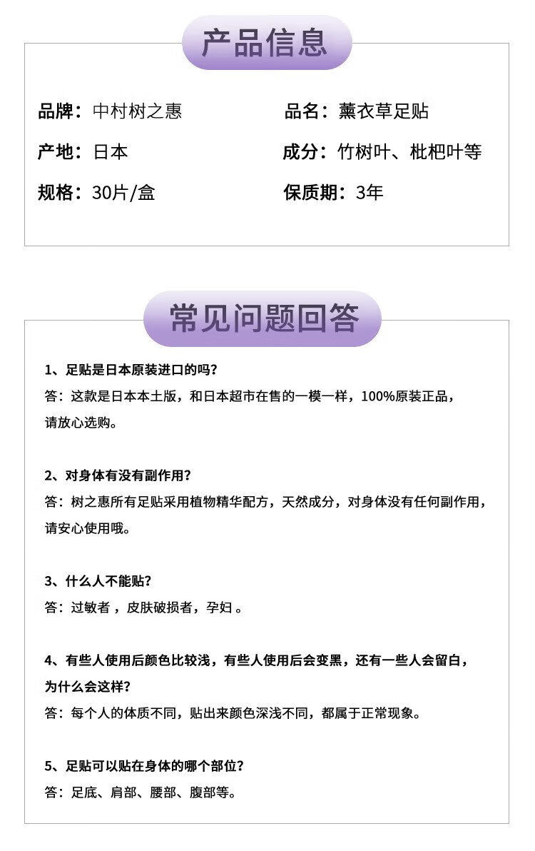 Tree Eki no Megumi Foot Patch Lavender Natural Bamboo Sap Nakamura Foot Beauty Sleeping Foot Patch imported from Japan 30 patches/box