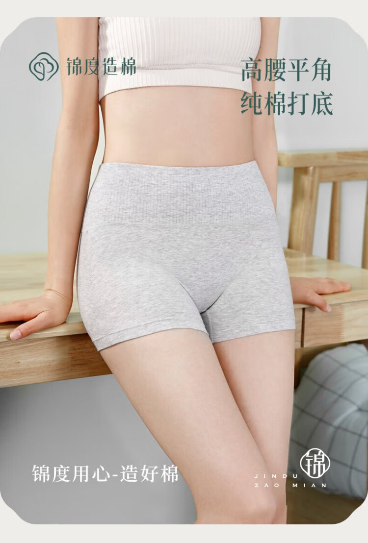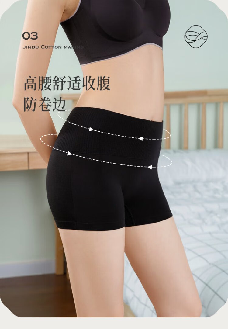 Jindu Boxer Briefs Women's Pure Cotton Crotch High Waist Tummy Control Safety Women's Boxer Shorts Apricot+Blue+Grey+Bean Paste XL