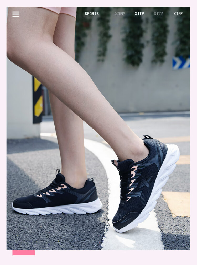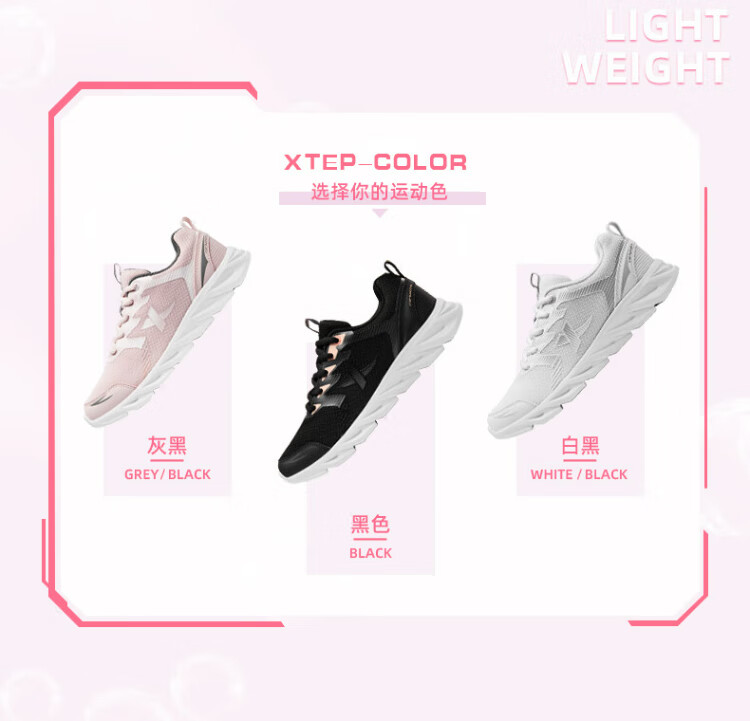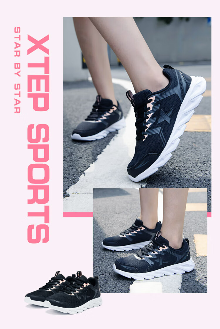 Xtep sports shoes running shoes winter mesh breathable lightweight running shoes women's shoes casual shoes black