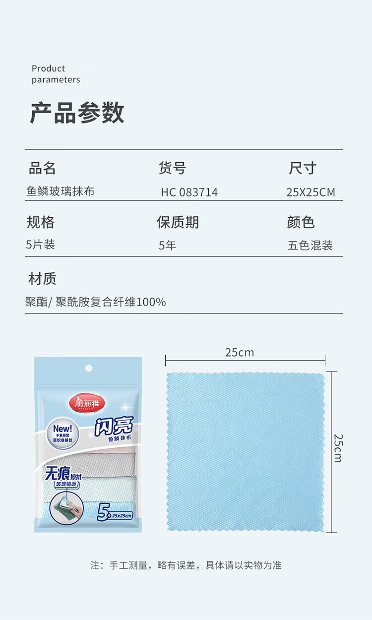 Meiya fish scale rag 25*25cm 5 pieces glass mirror artifact wiping cup special kitchen not easy to leave marks and lint