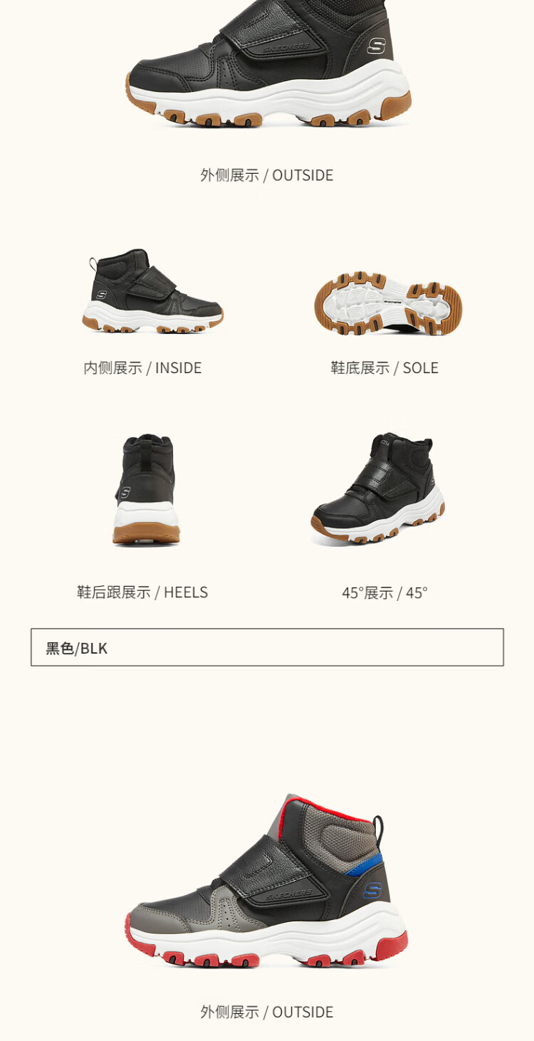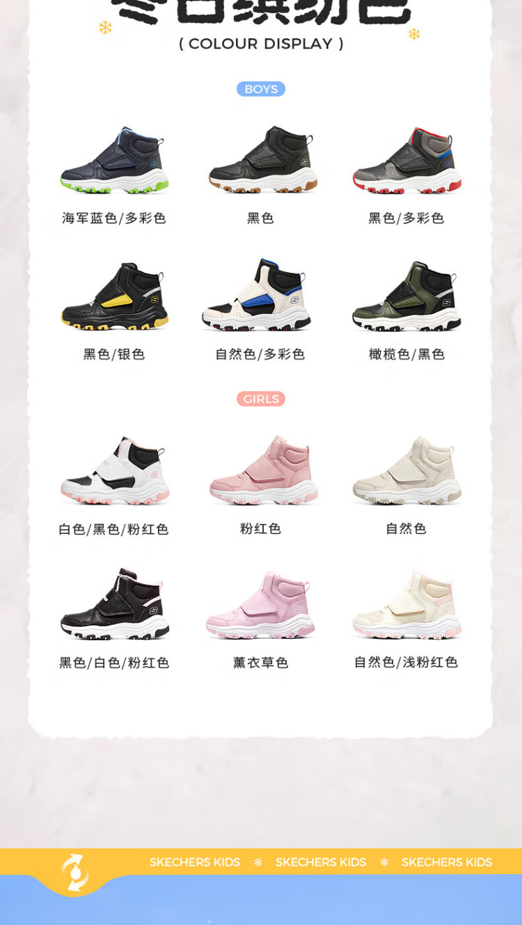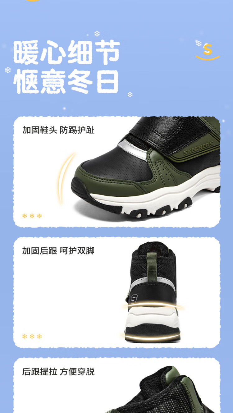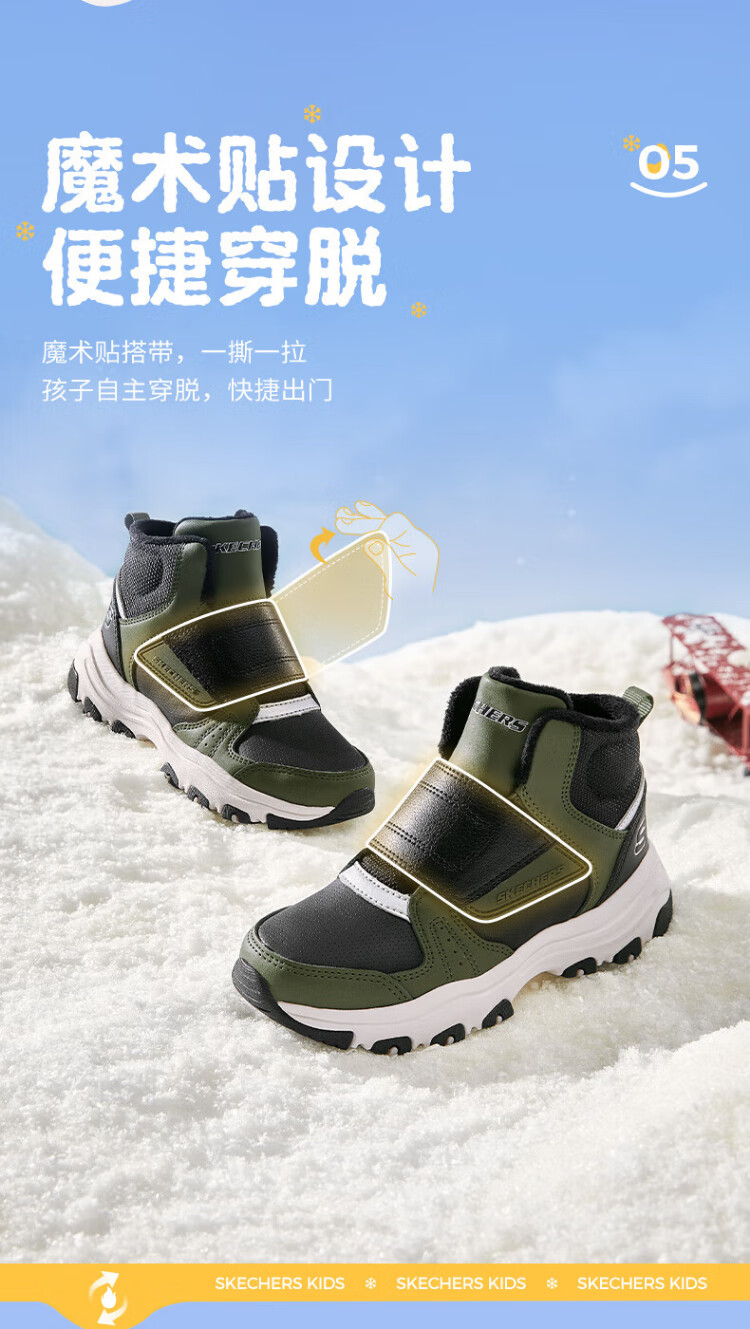 Skechers autumn and winter children's shoes baby snow boots high top children's cotton shoes boys warm cotton boots 8701647L