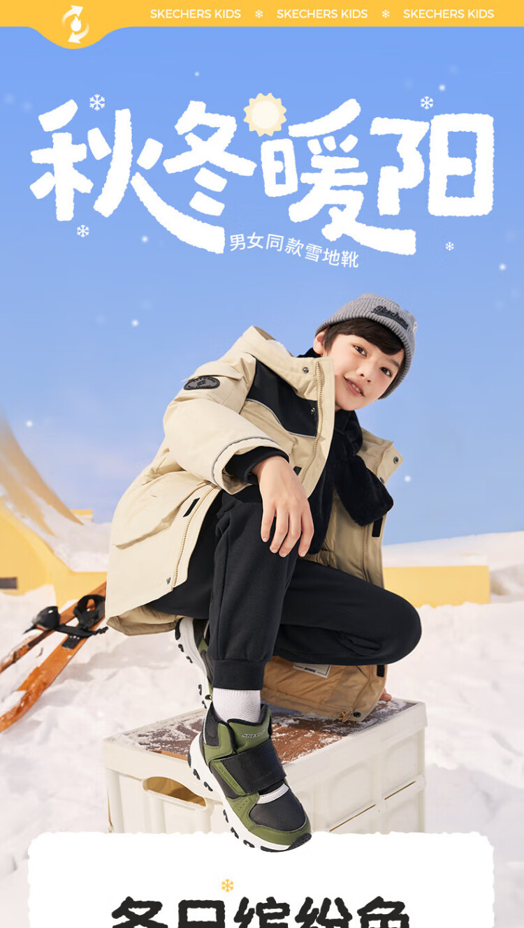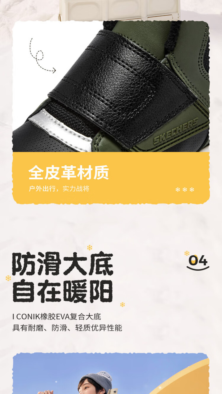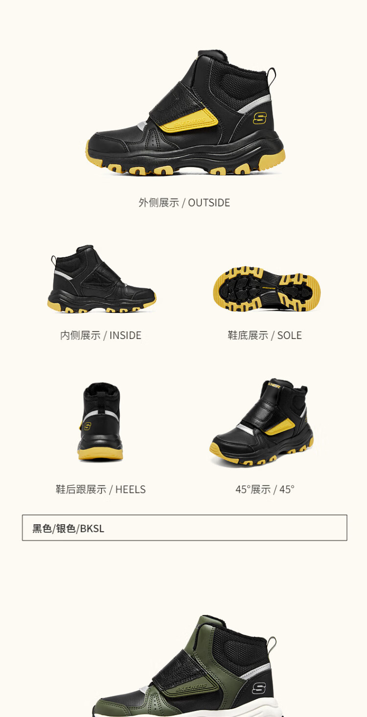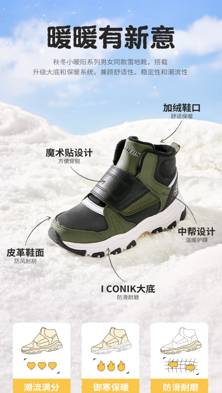 Skechers autumn and winter children's shoes baby snow boots high top children's cotton shoes boys warm cotton boots 8701647L
