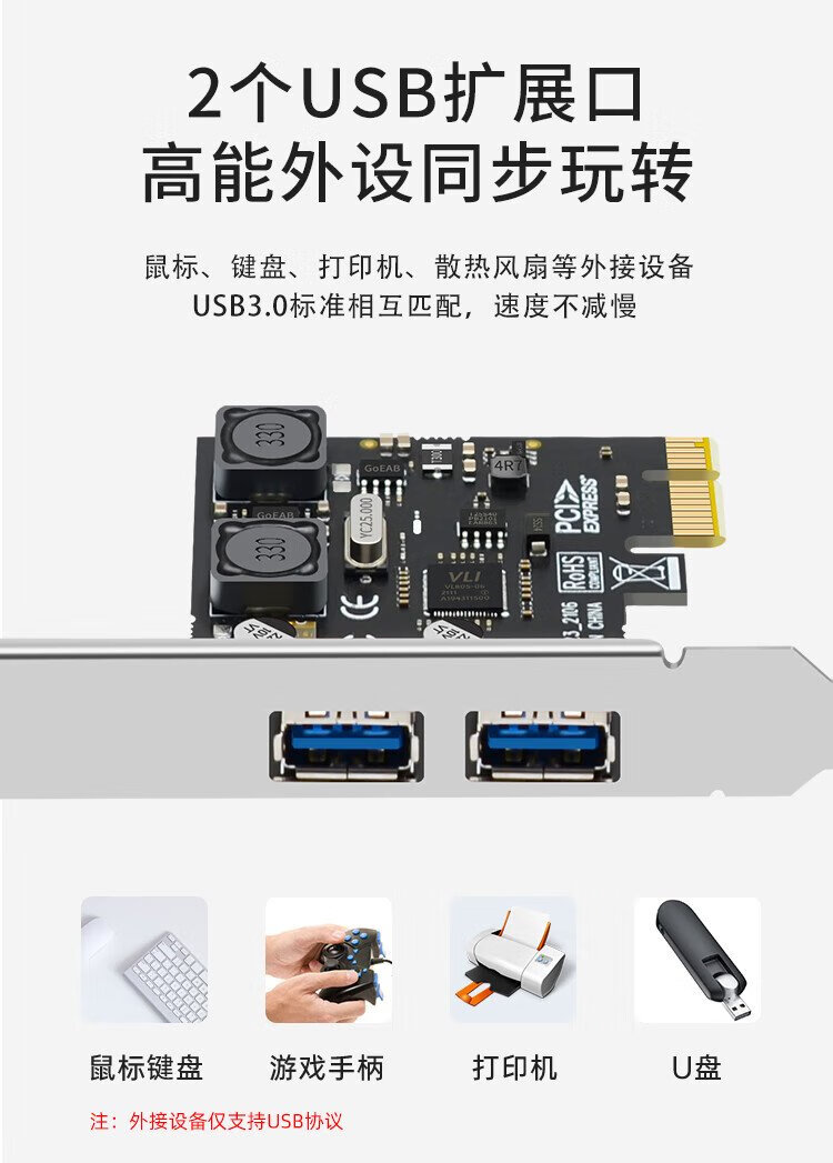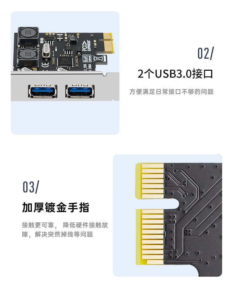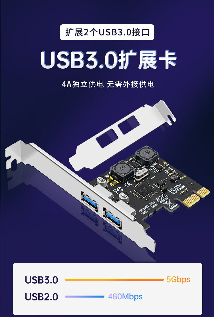 EB-LINK PCIE to 2-port USB3.0 expansion card desktop computer built-in dual-port USB adapter card HUB hub card independent power supply