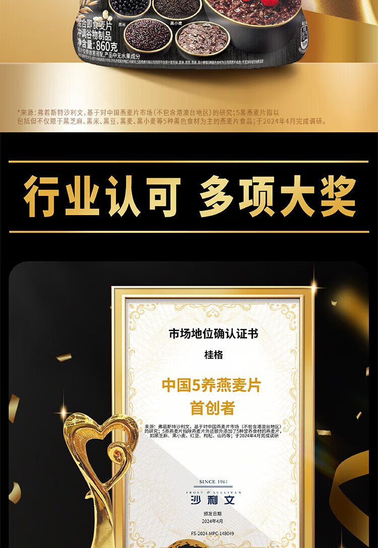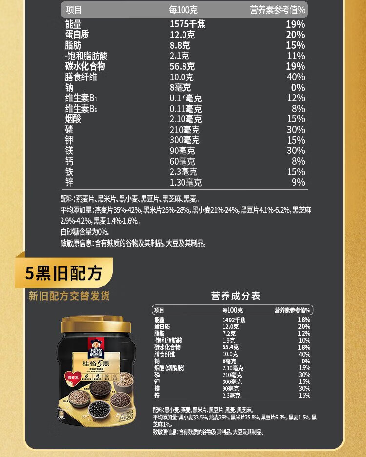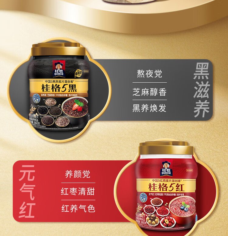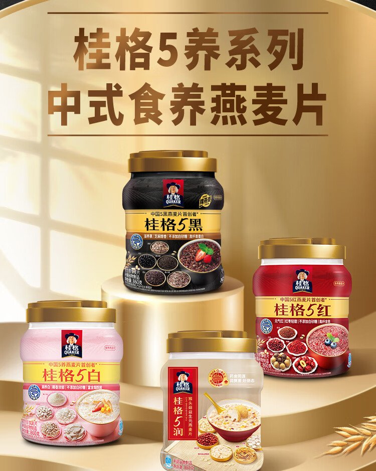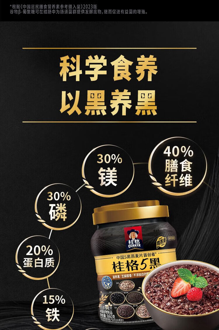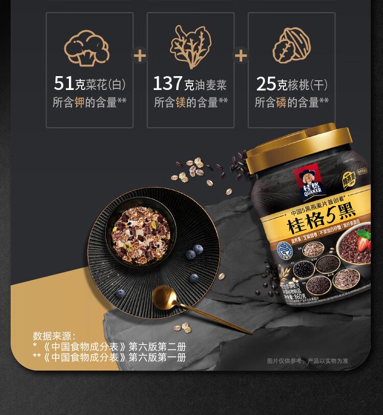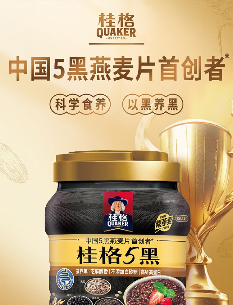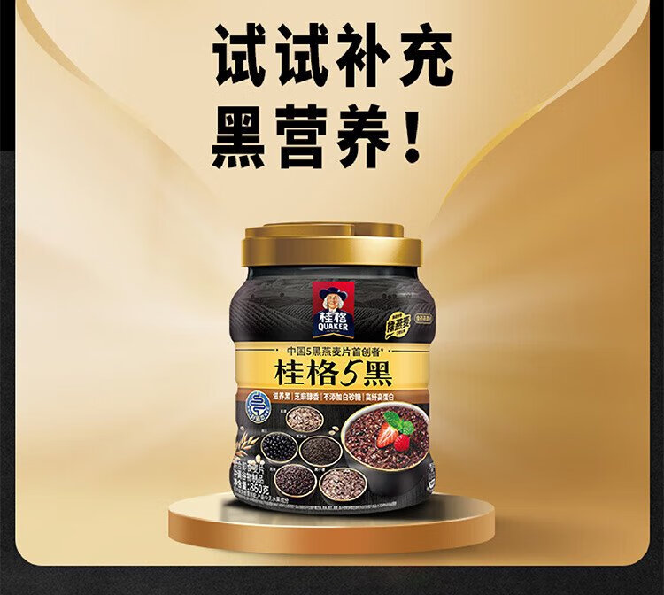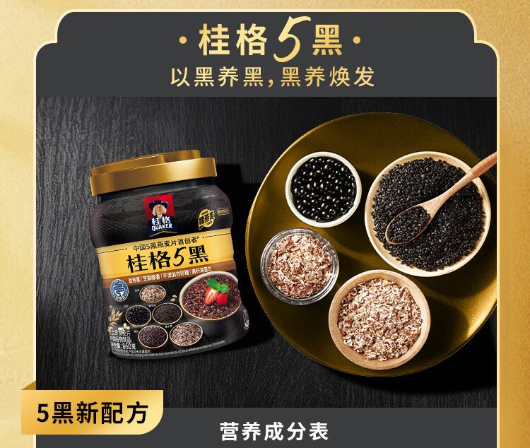 QUAKER 5 Dark Mixed Instant Oatmeal 860g Added Black Sesame No Added White Sugar